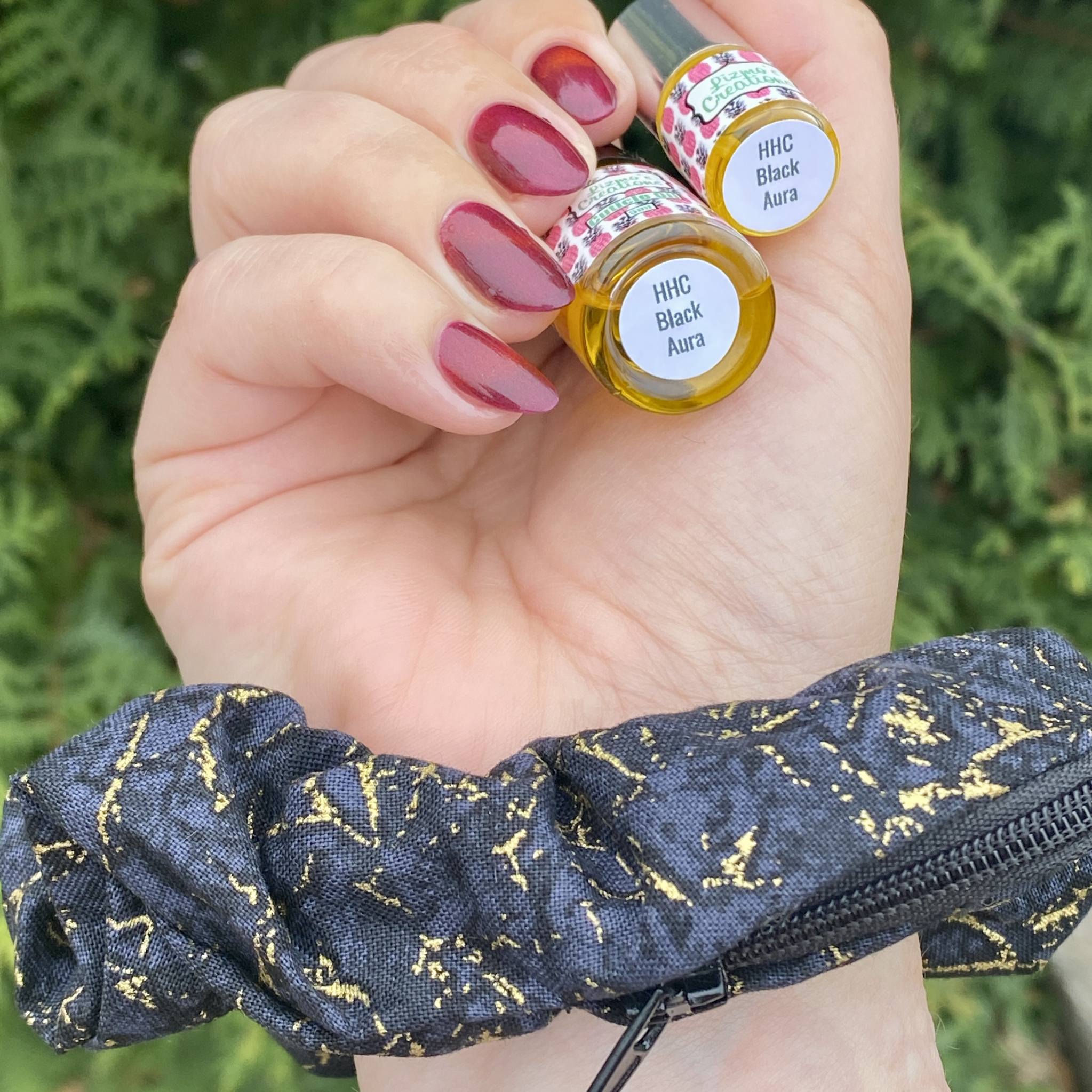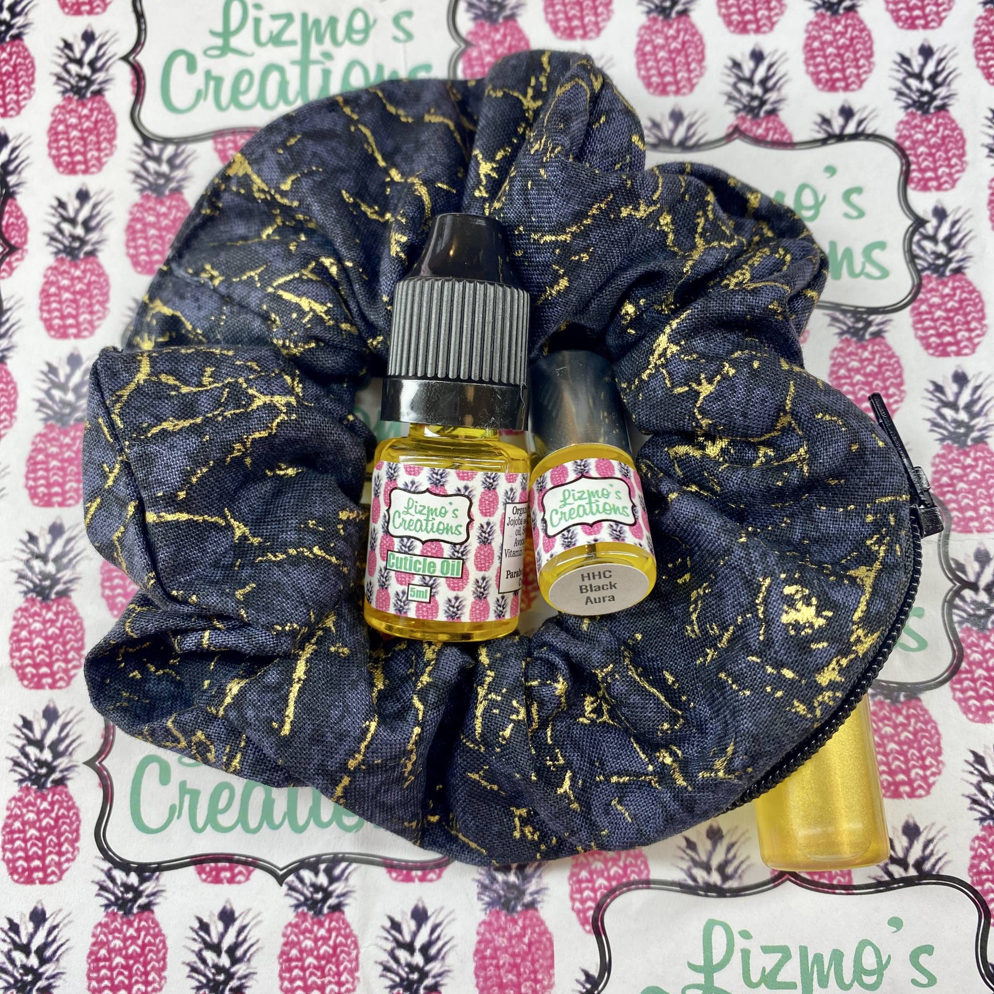 Items - Scrunchie+ with 2ml cuticle oil inside scented with Black Aura