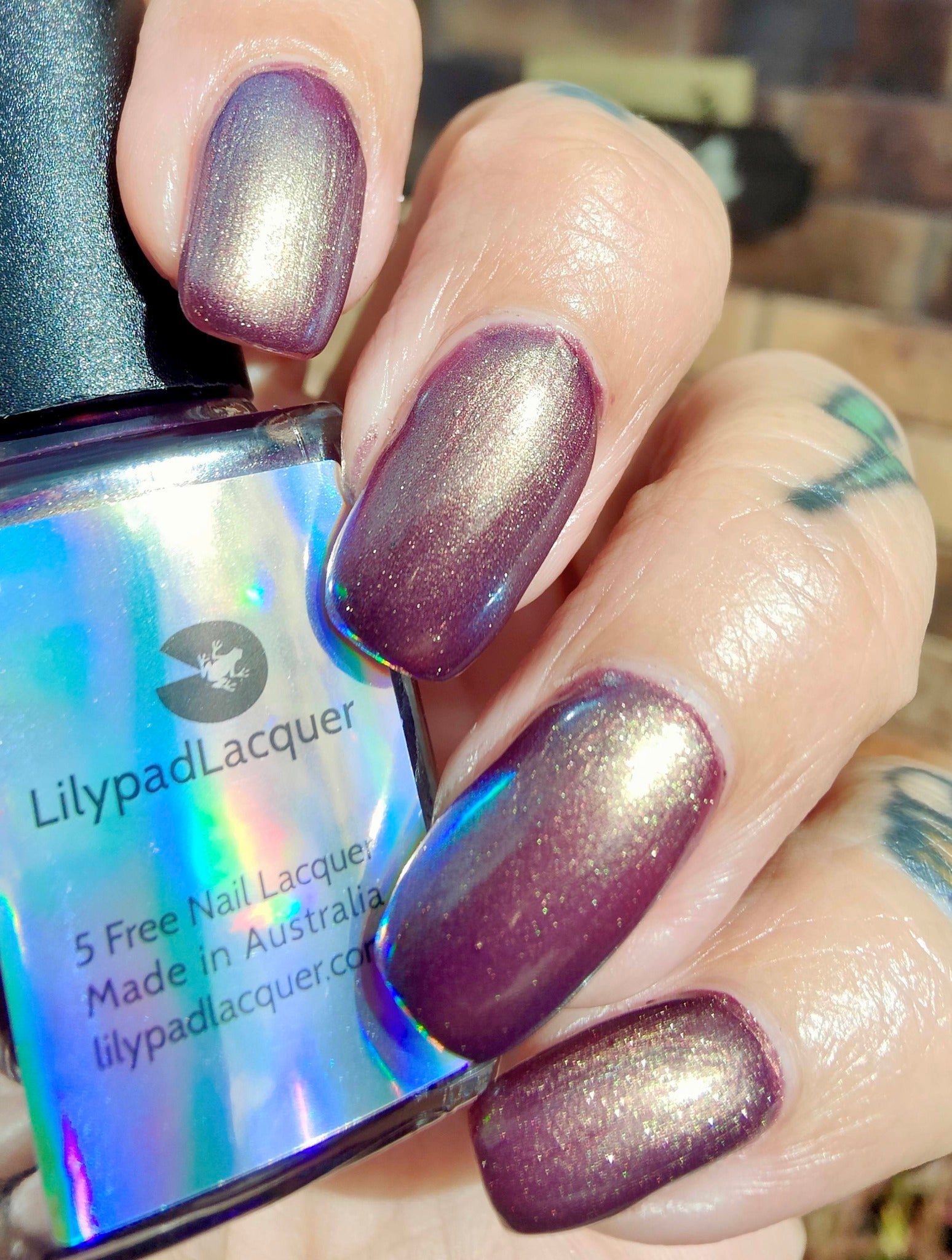 "Wide Open Spaces" has a plum base with olive green/blue/teal shifting shimmer.