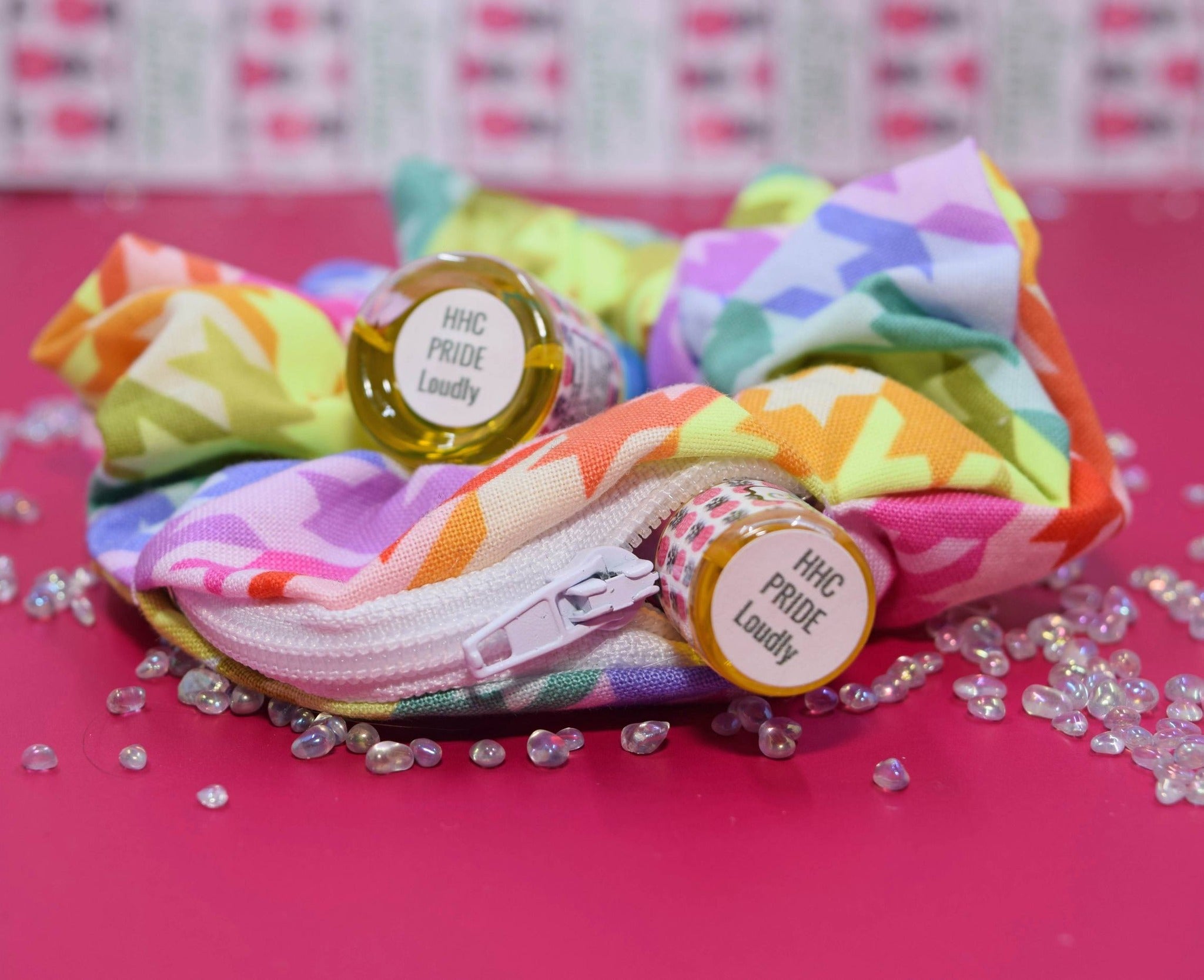 Items - Scrunchie+ with 2ml cuticle oil inside scented with Pride Loudly