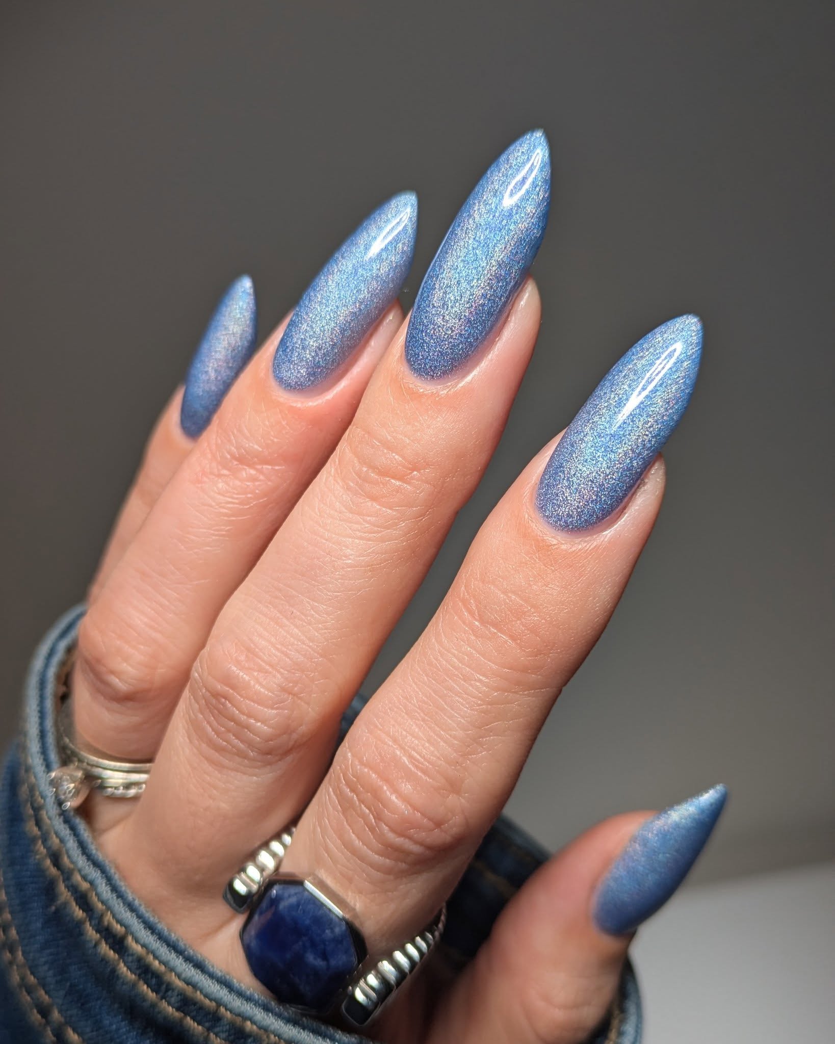 "Gave Me Cookie, Got You Cookie" has a blurple base with linear holo.