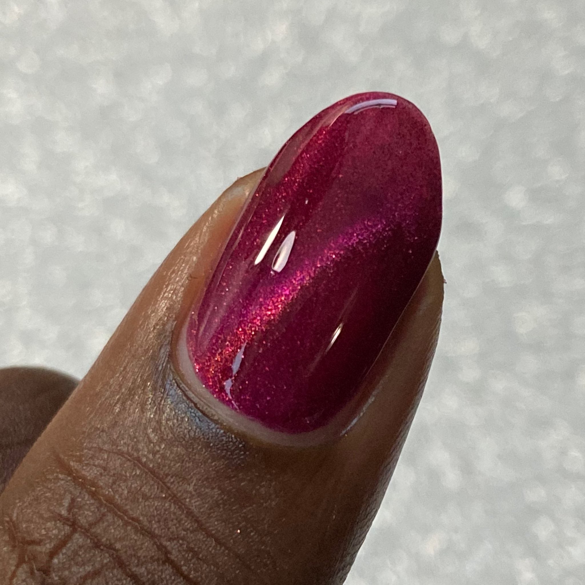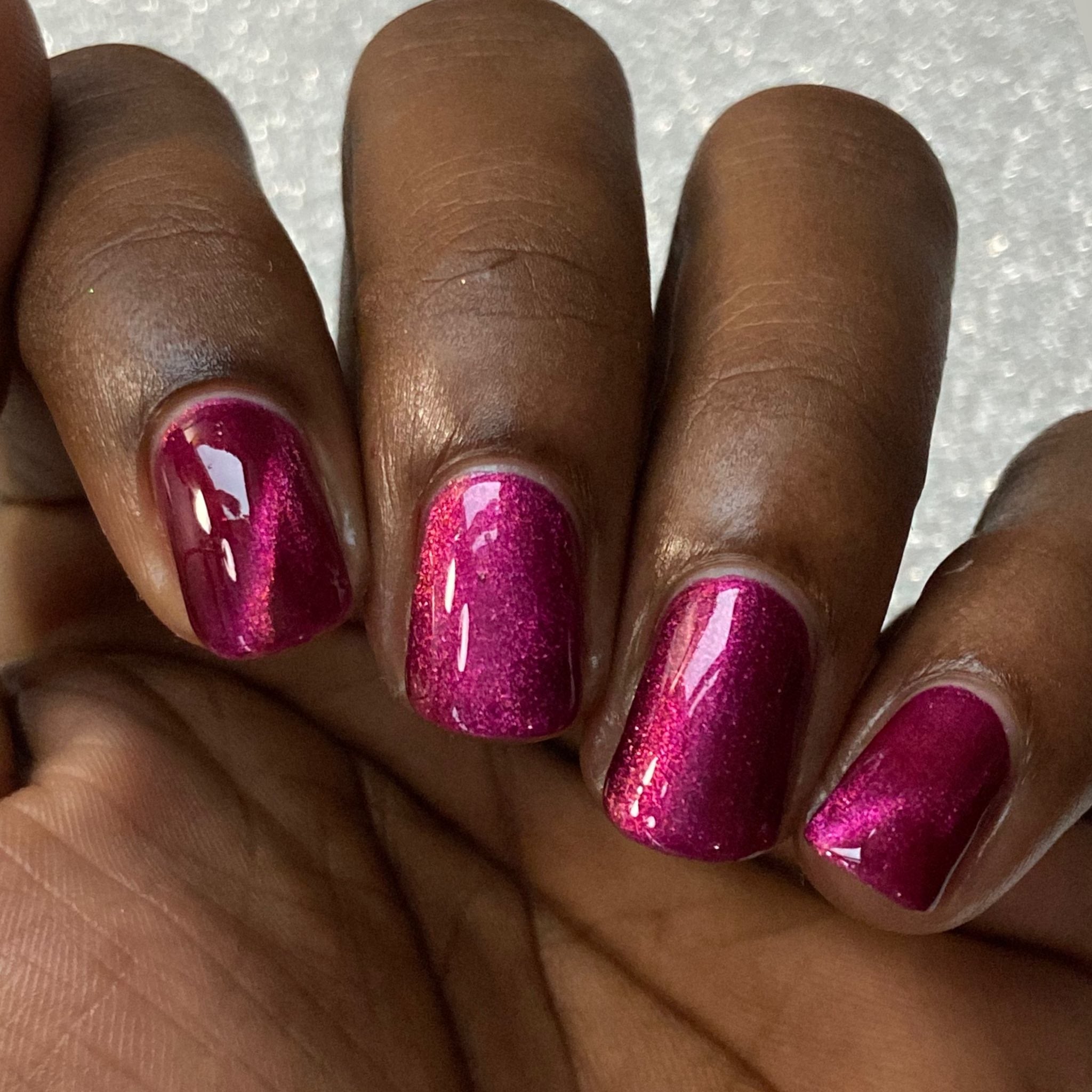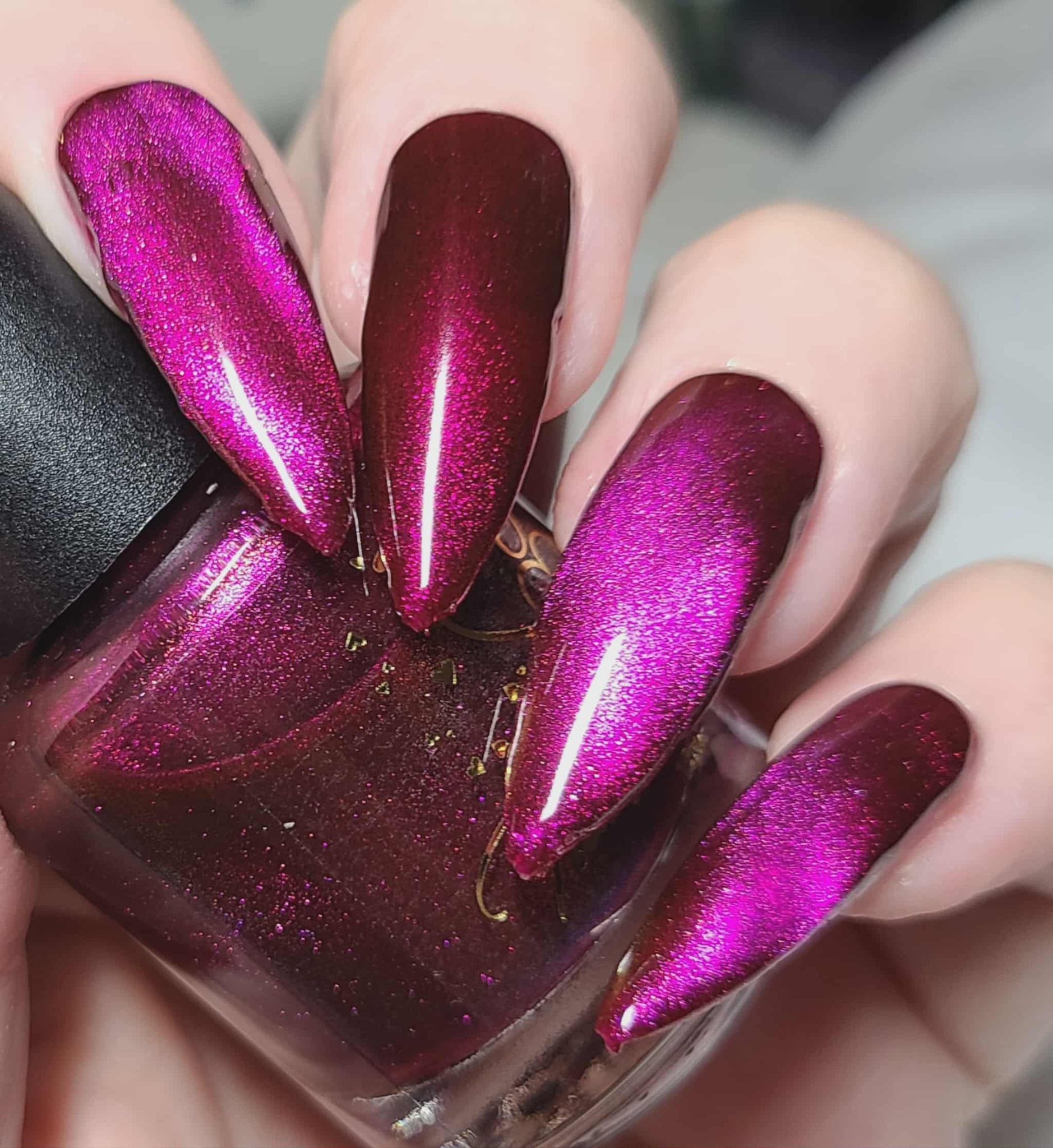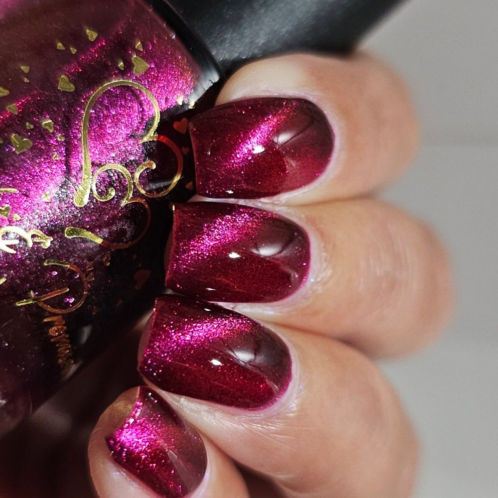 "Cupid’s Kiss" has a bright magenta base with magenta/gold/green magnetic pigment.