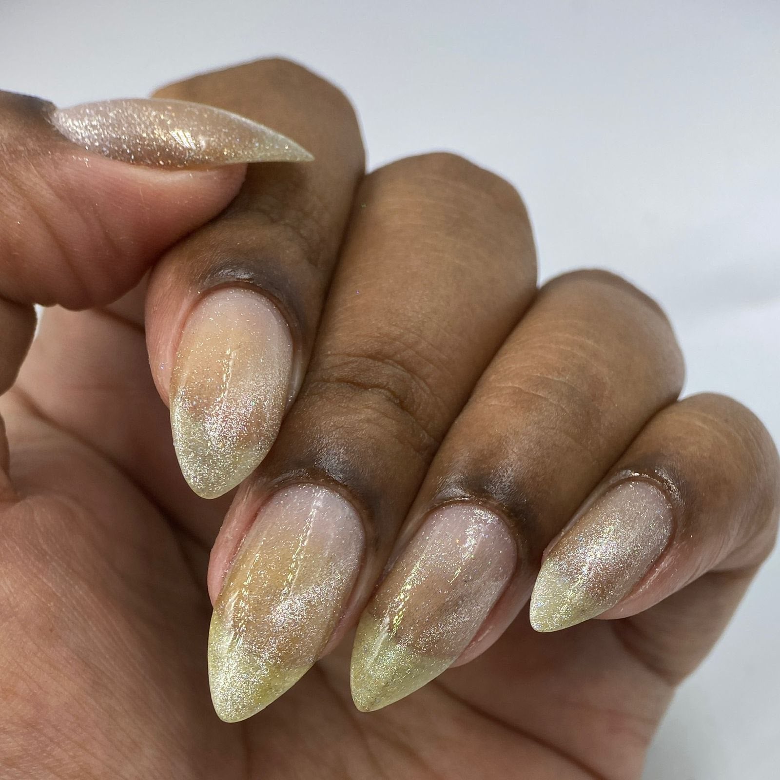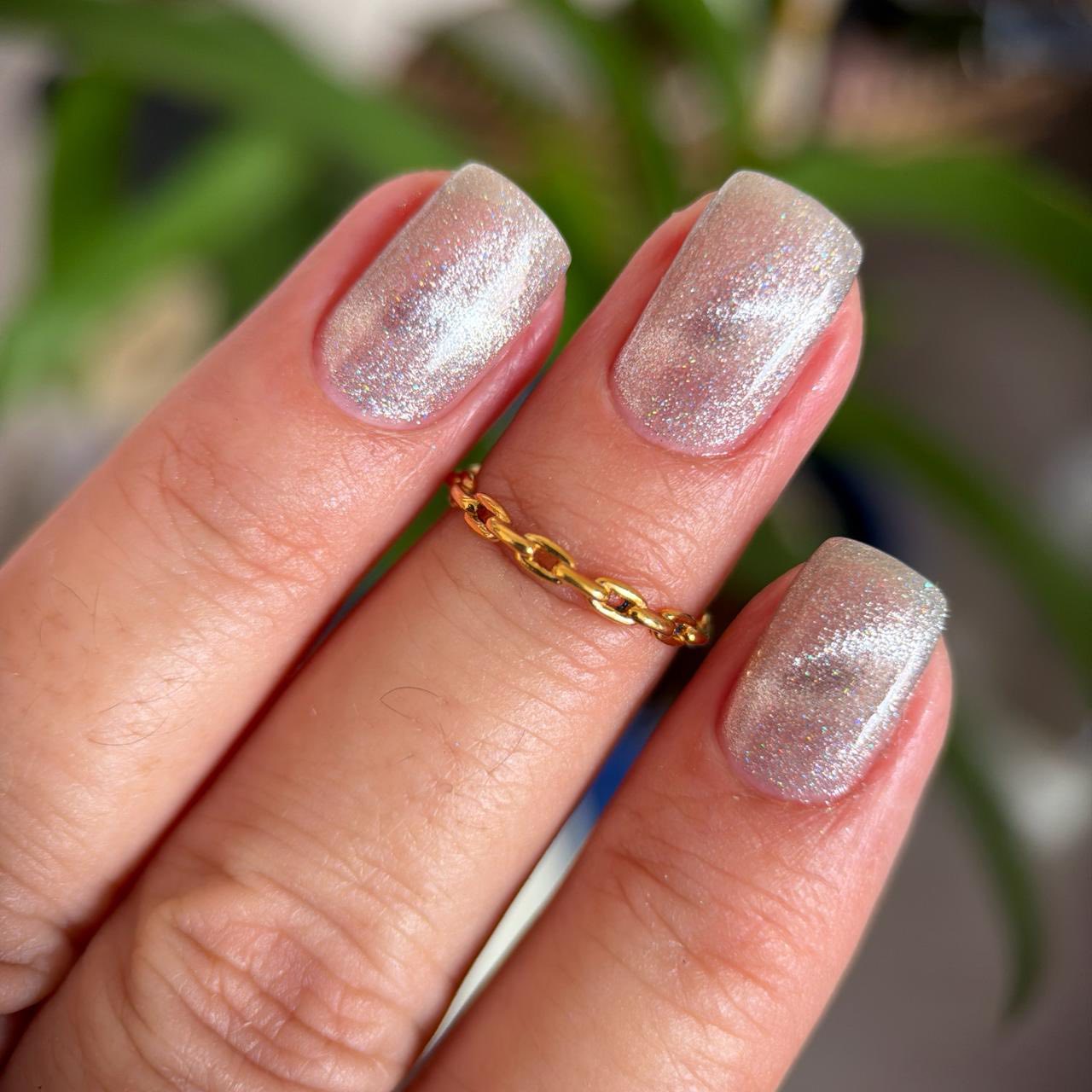 "Beautiful and Dangerous" has a transparent base with magnetic silver and holographic micro flakies.
