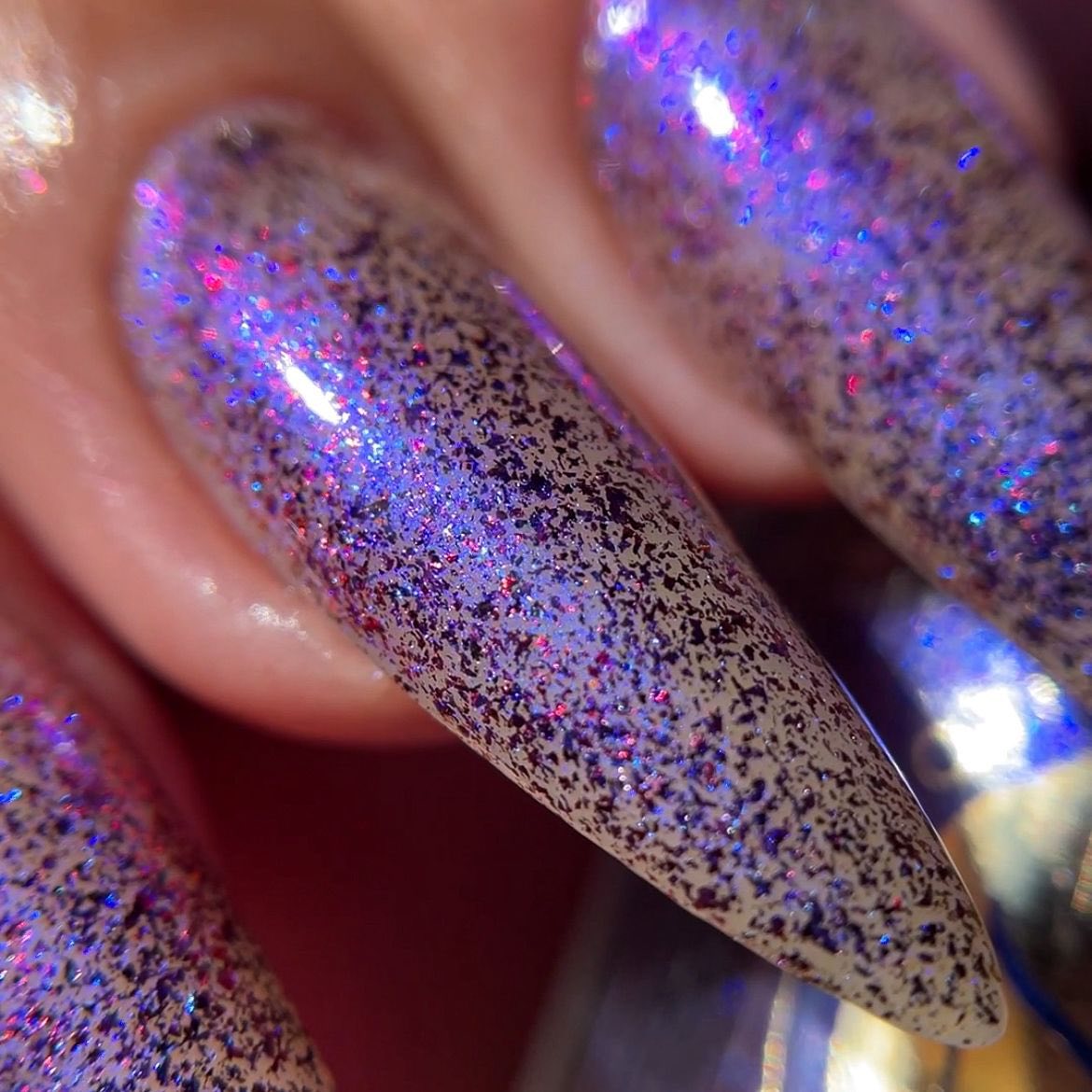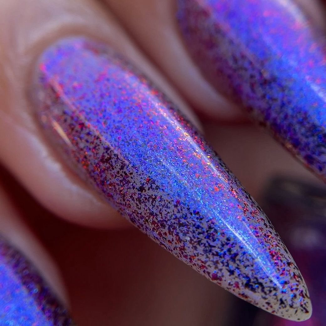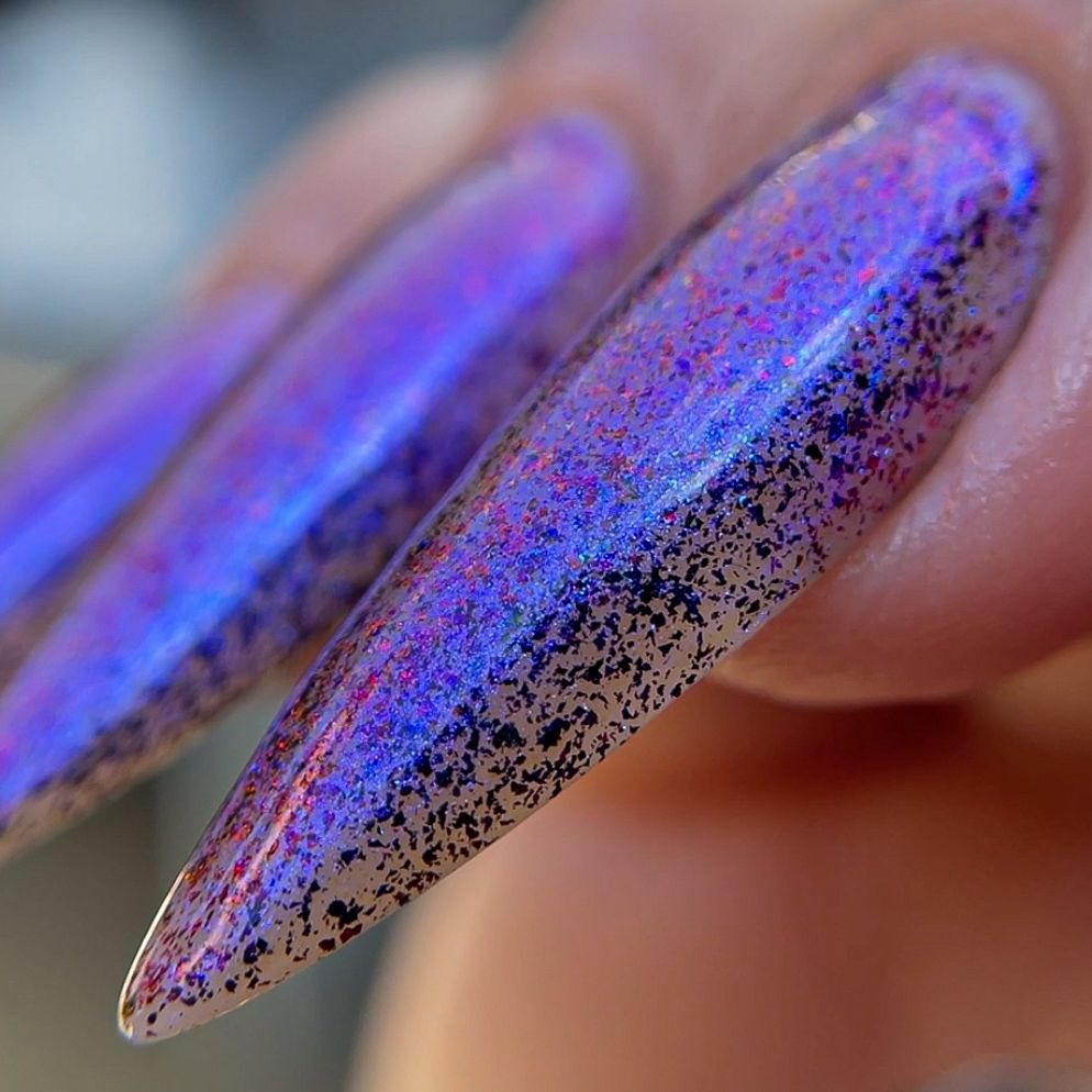 "Beauty That Endures" has a transparent jelly base with micro flakie black/red with blue aurora shimmer.