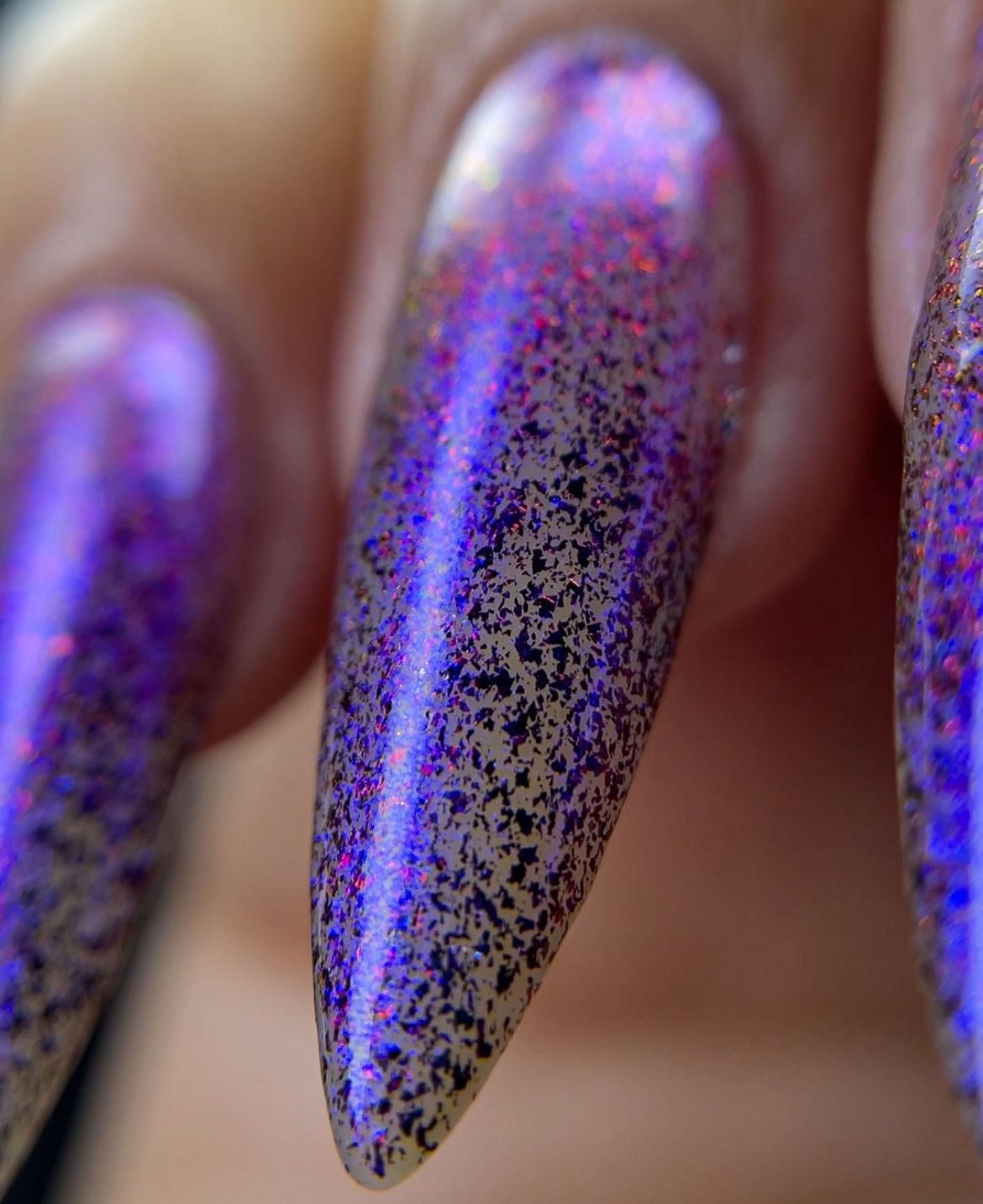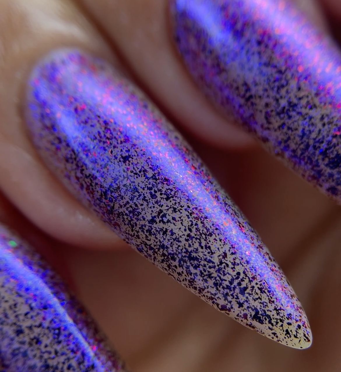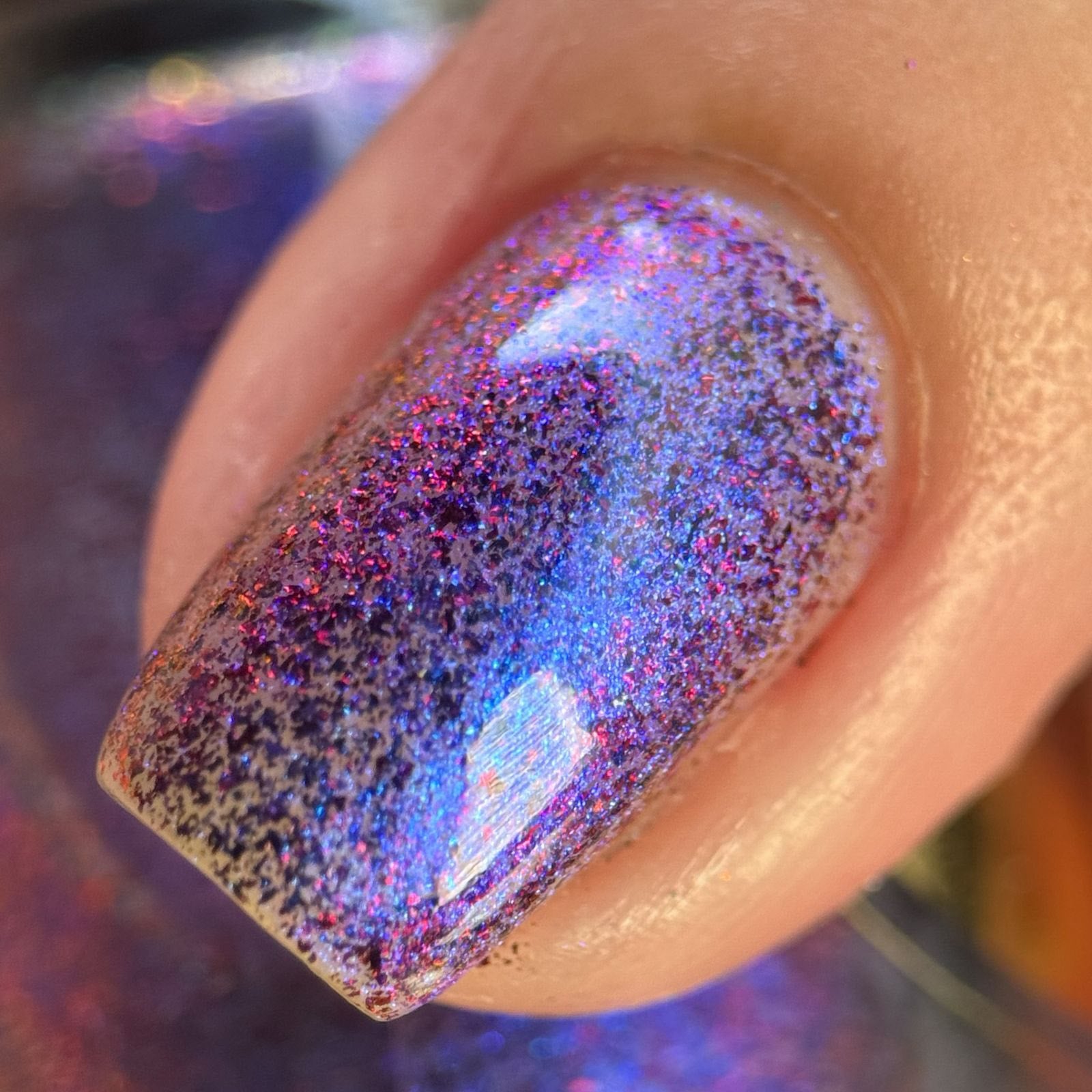 "Beauty That Endures" has a transparent jelly base with micro flakie black/red with blue aurora shimmer.