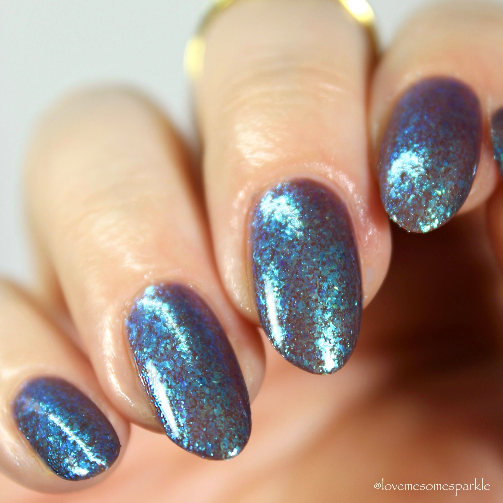 "Moonlight Jellies" is a sheer taupe packed with iridescent blue/aqua flakes.