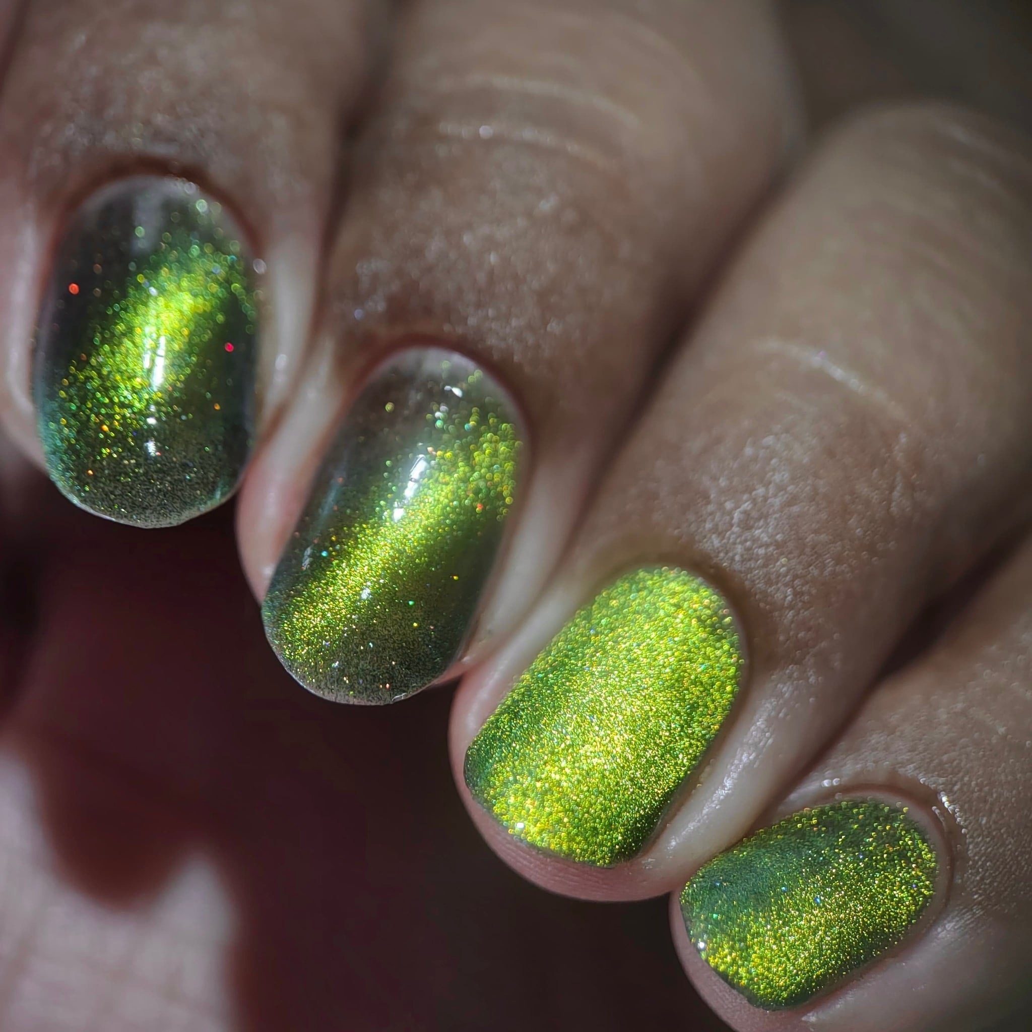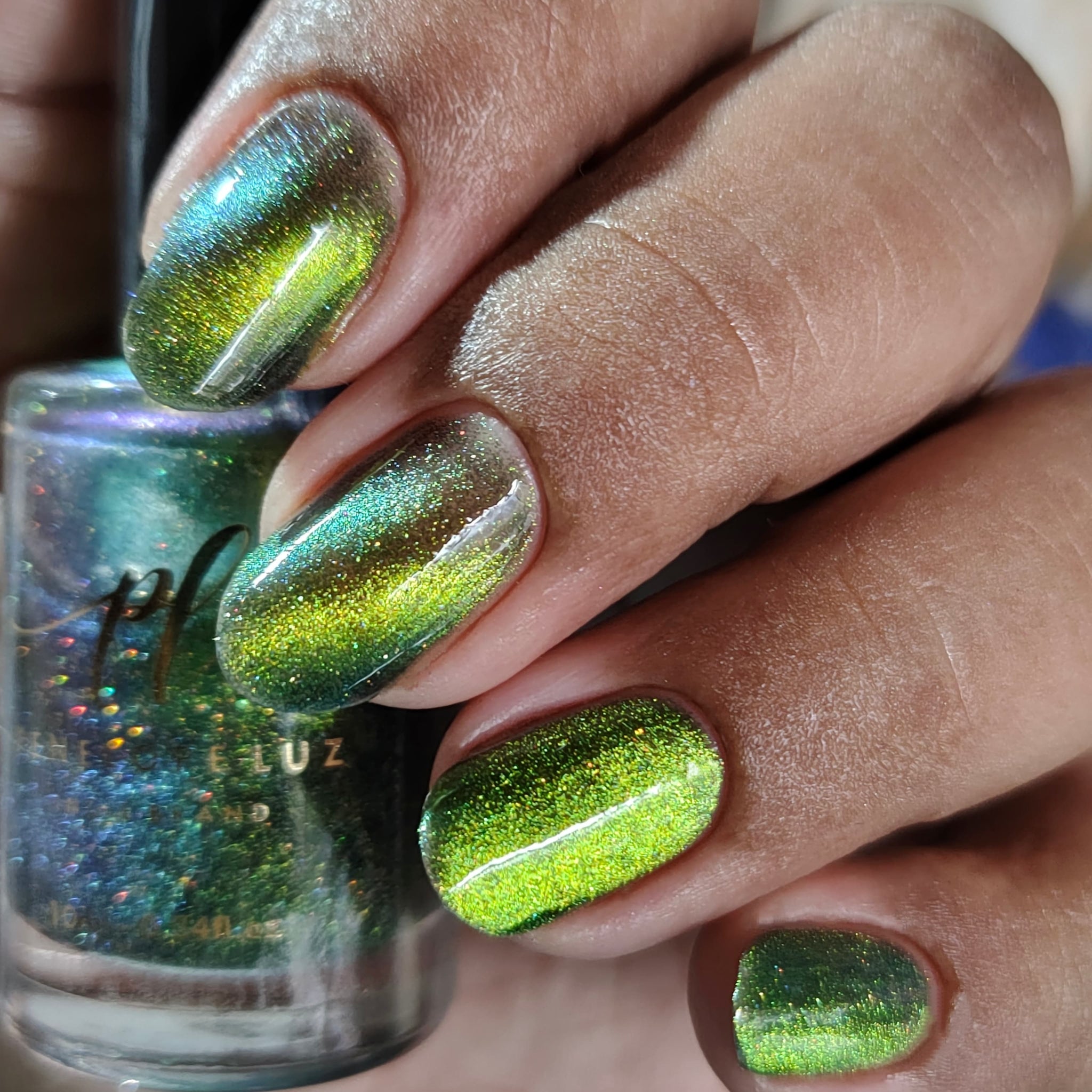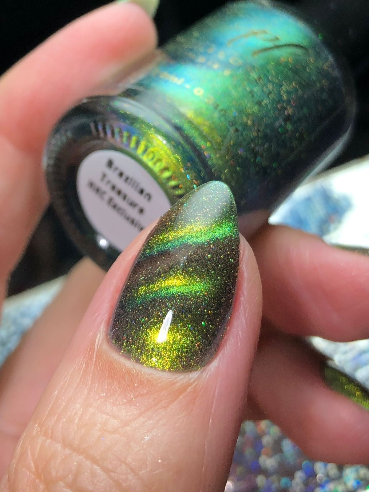 "Brazilian Treasures" is a topper with a magnetic green/blue with gold fine glitter.