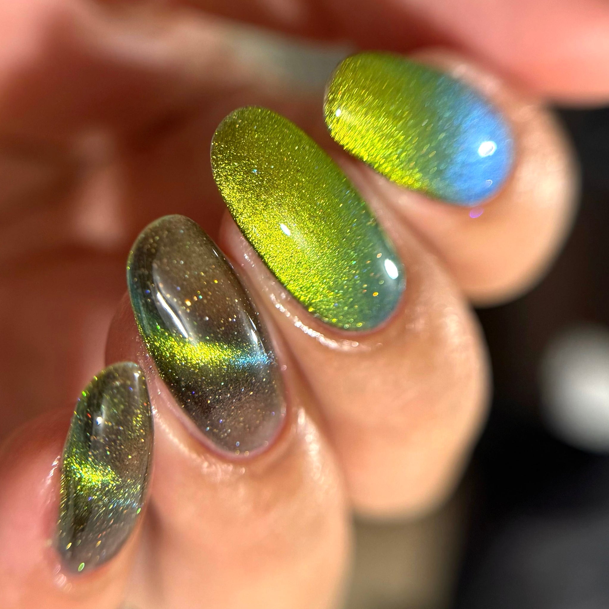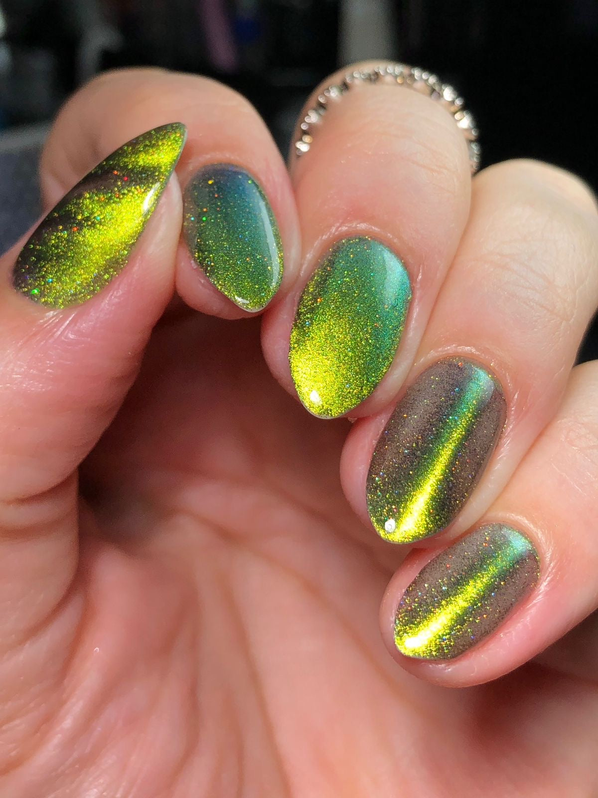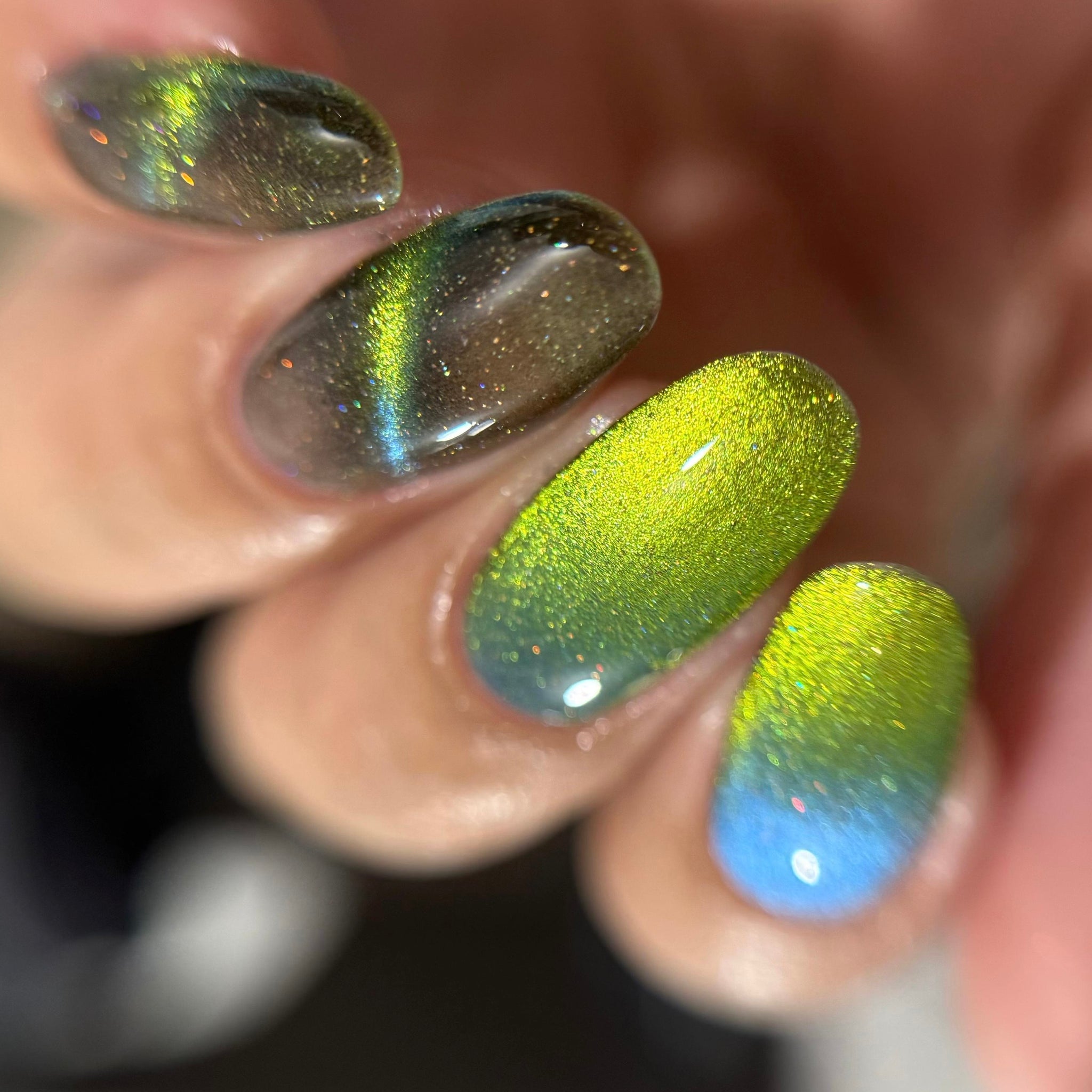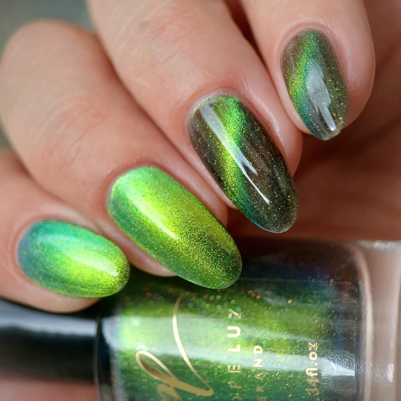 "Brazilian Treasures" is a topper with a magnetic green/blue with gold fine glitter.
