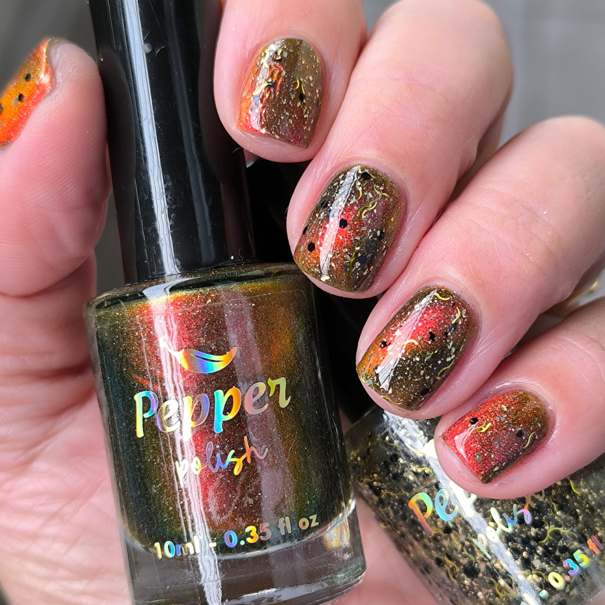 Pepper Polish invites you to say goodbye to the Sunset Horizon series with a duo that celebrates the intensity and beauty of the last rays of sunlight over the African landscape. This is the final release of the collection — designed to go out with a golden flourish.