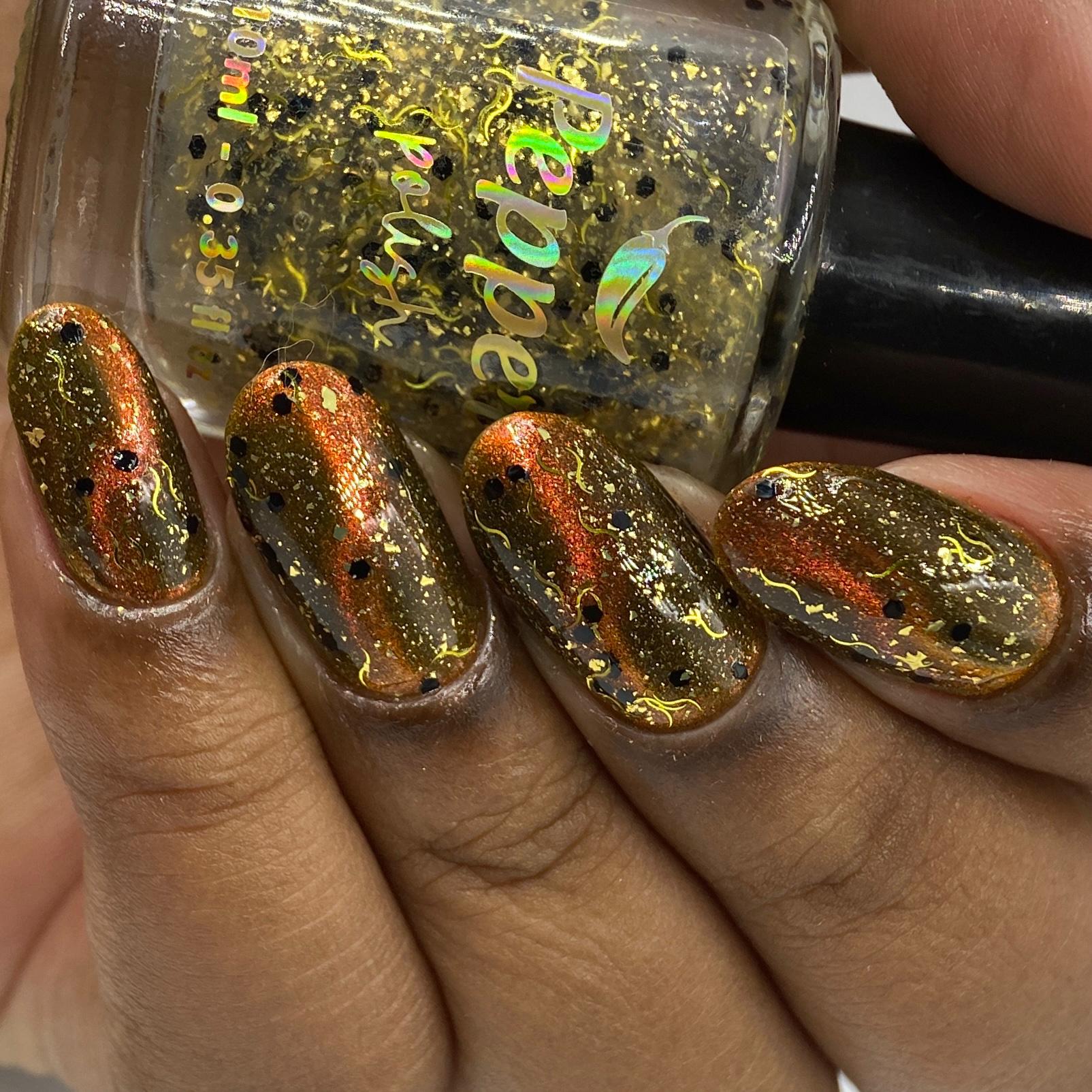 Please Note: HHC strives to provide a wide array of swatches so you can see the variations of our handmade polishes. Device displays, cameras used, camera settings and lighting may affect photo colors and the overall look of the polish. Makers formulate and hand mix in small batches which may cause slight variations as well. Please be mindful of these variations when making purchasing decisions.