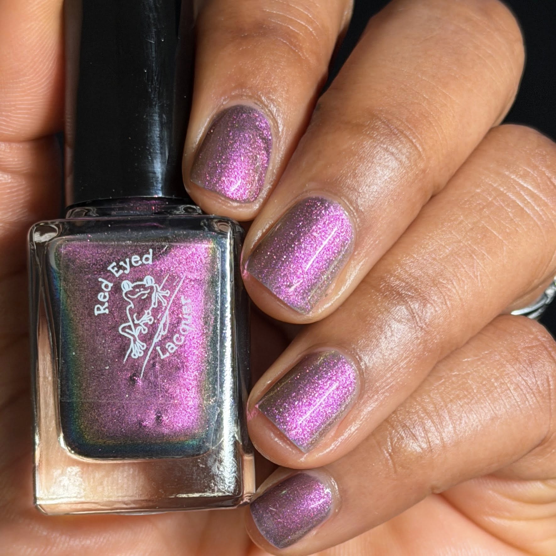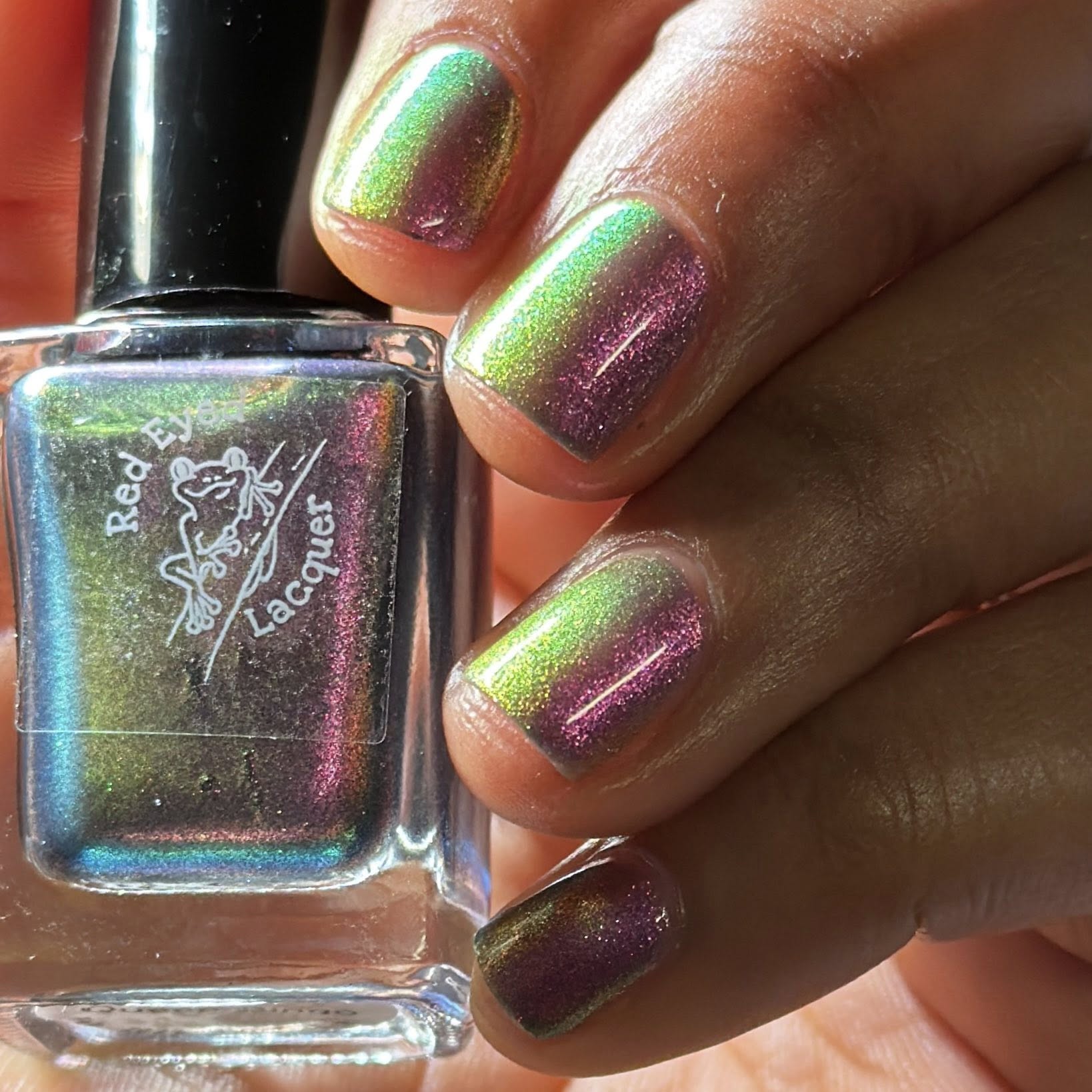 "Queen Bingo" is a deepened purple crelly with peach/purple/green shifting shimmer.