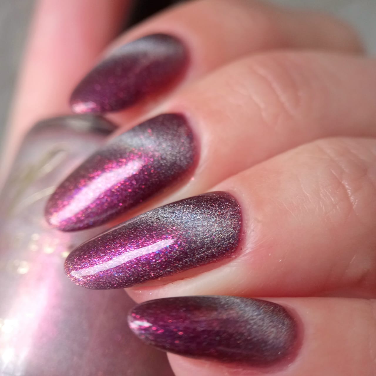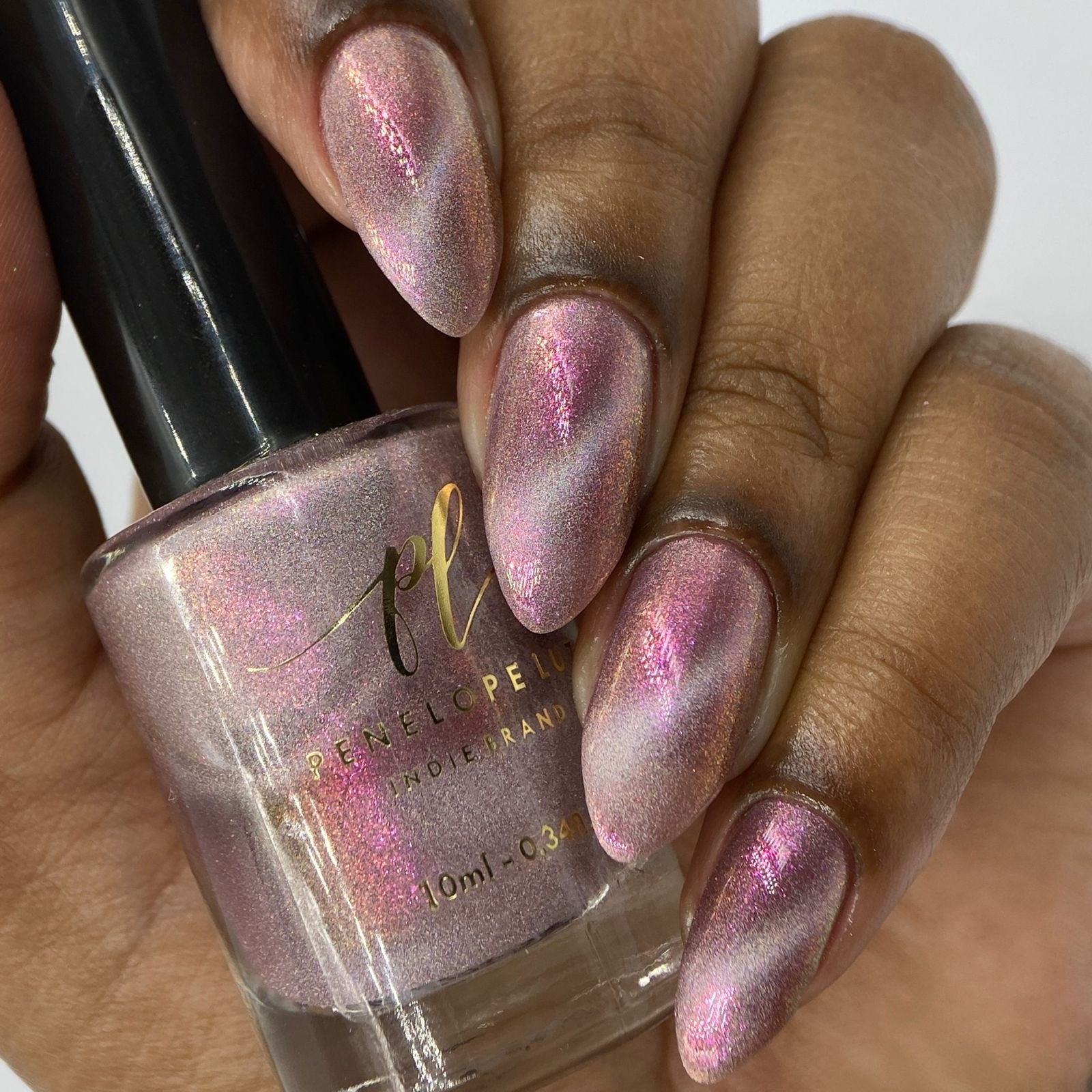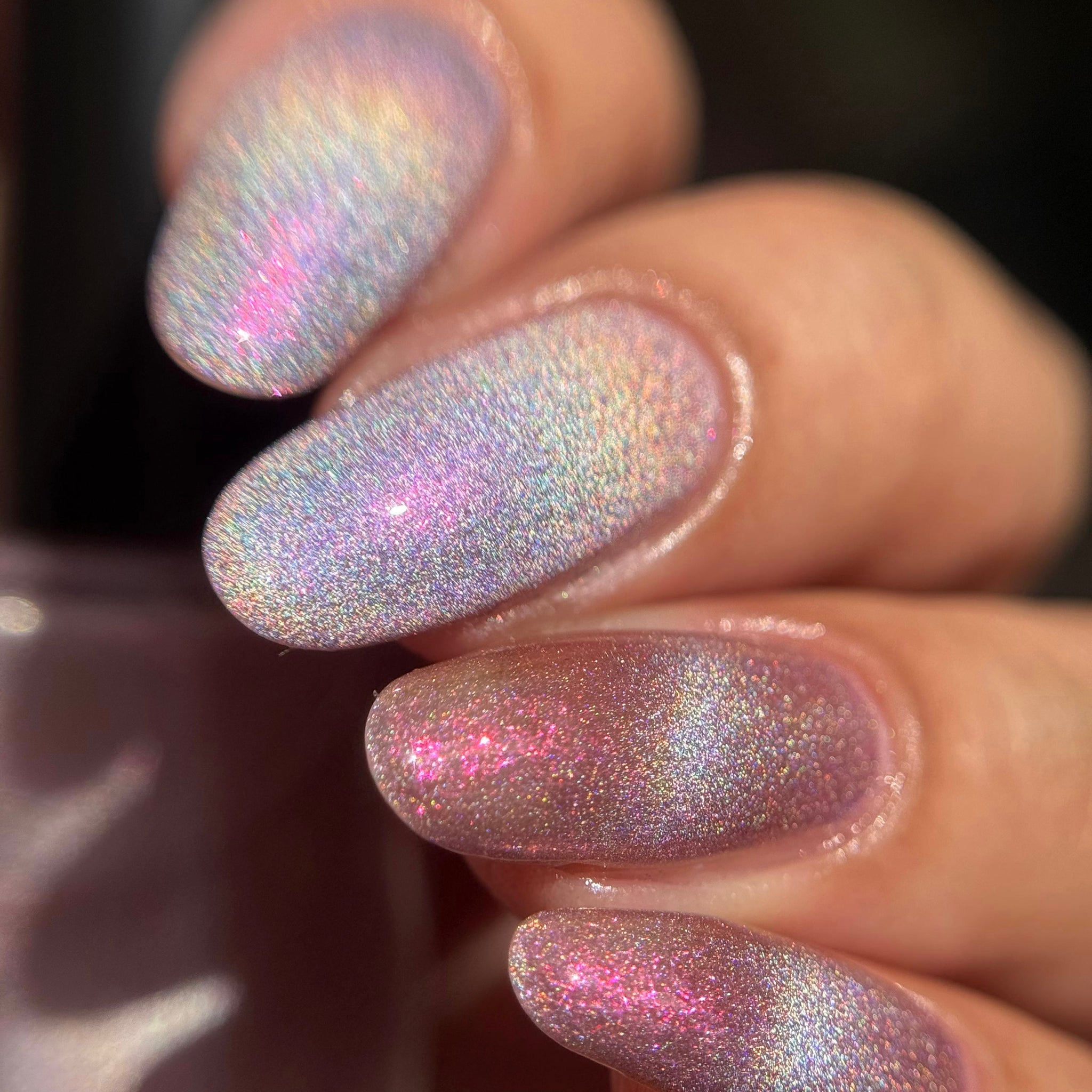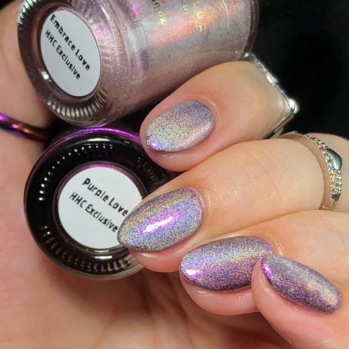 "Embrace Love" is holo magnetic with pink/gold shimmer.