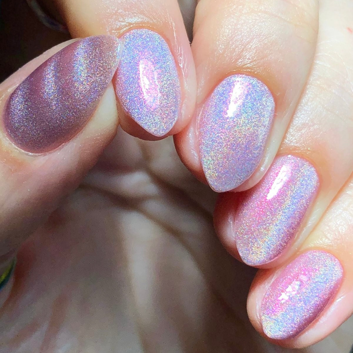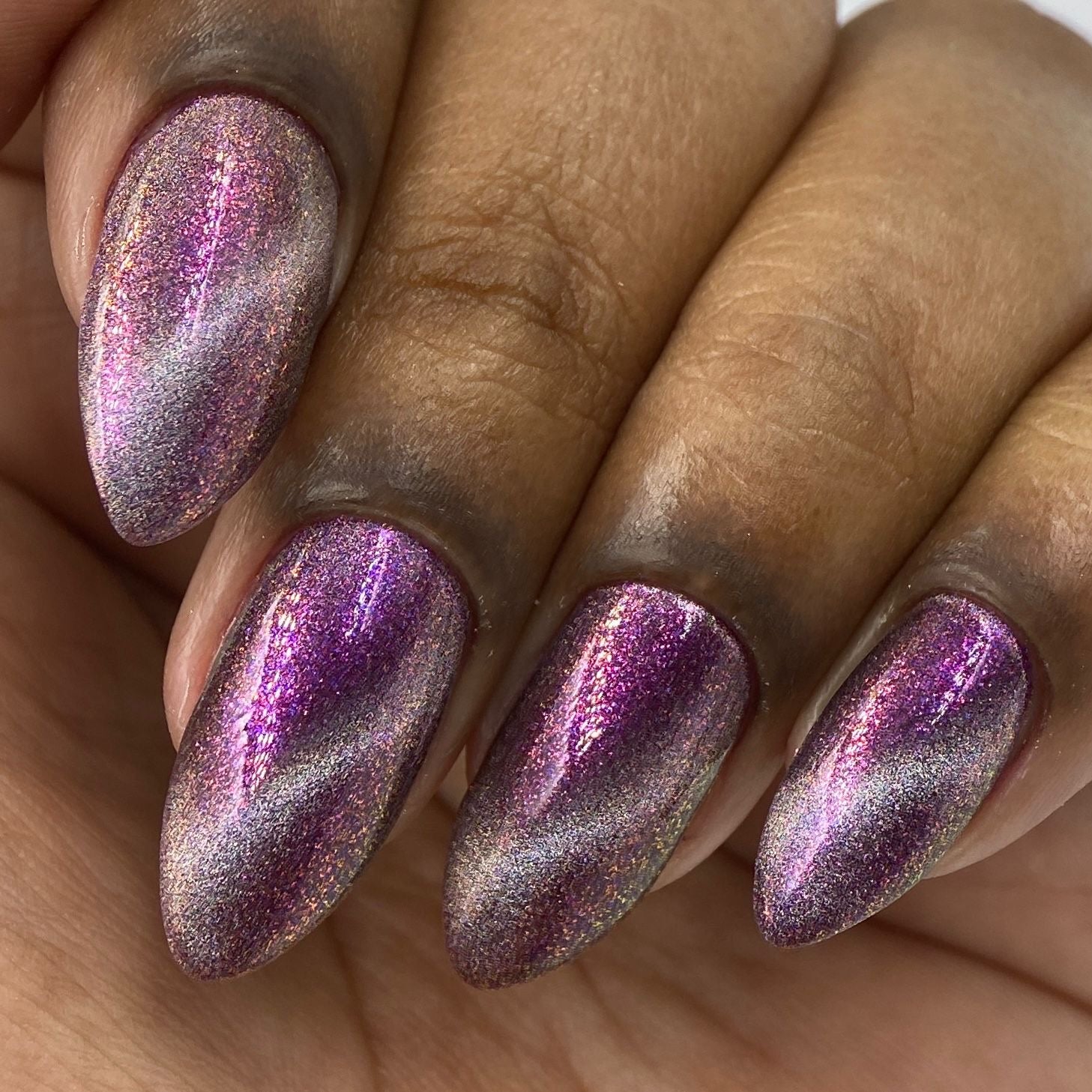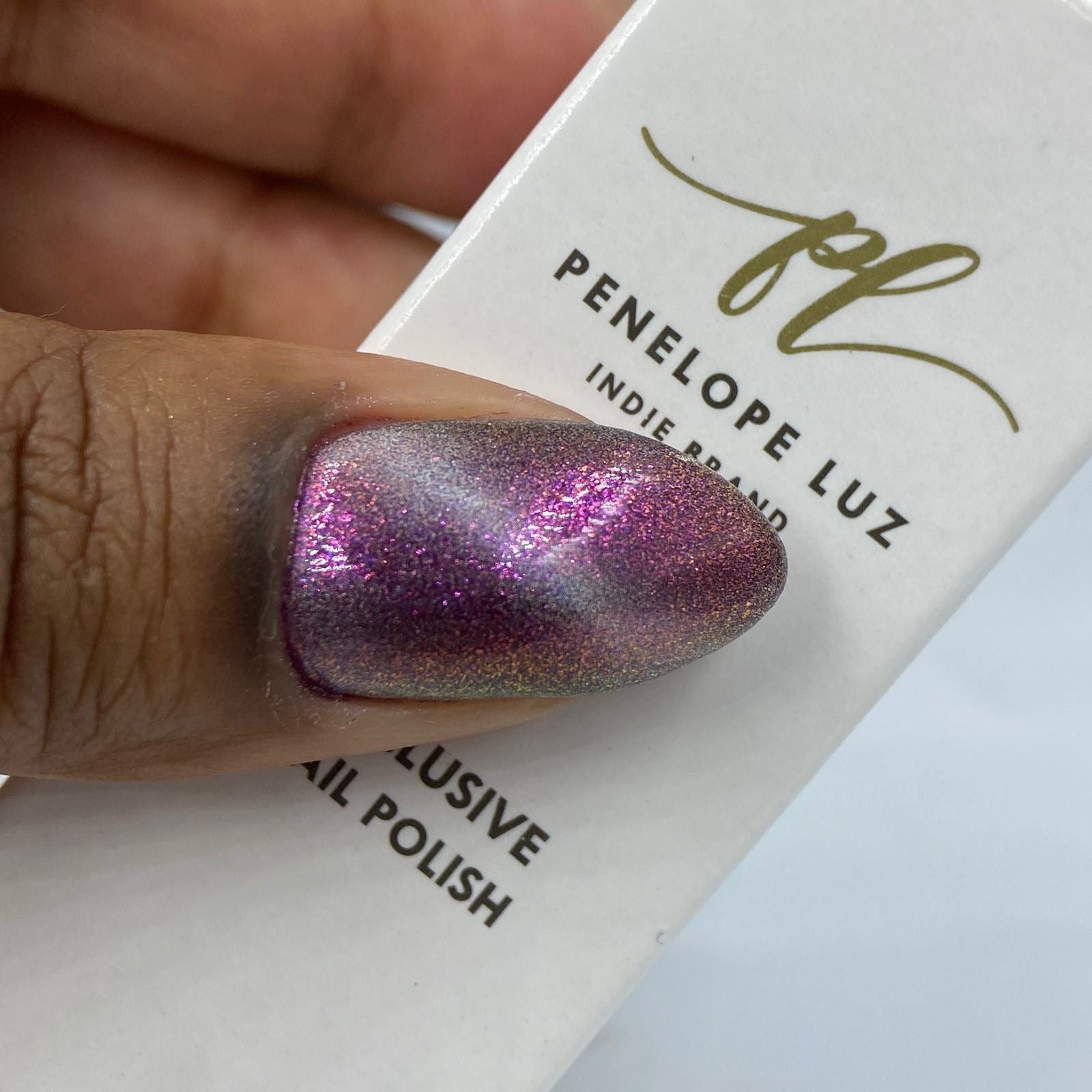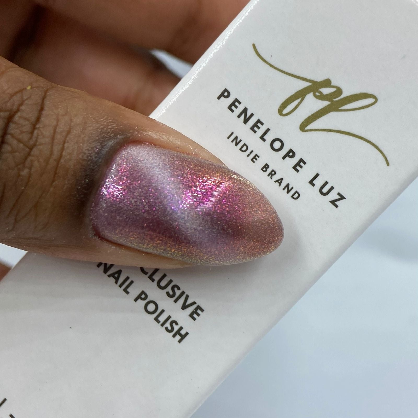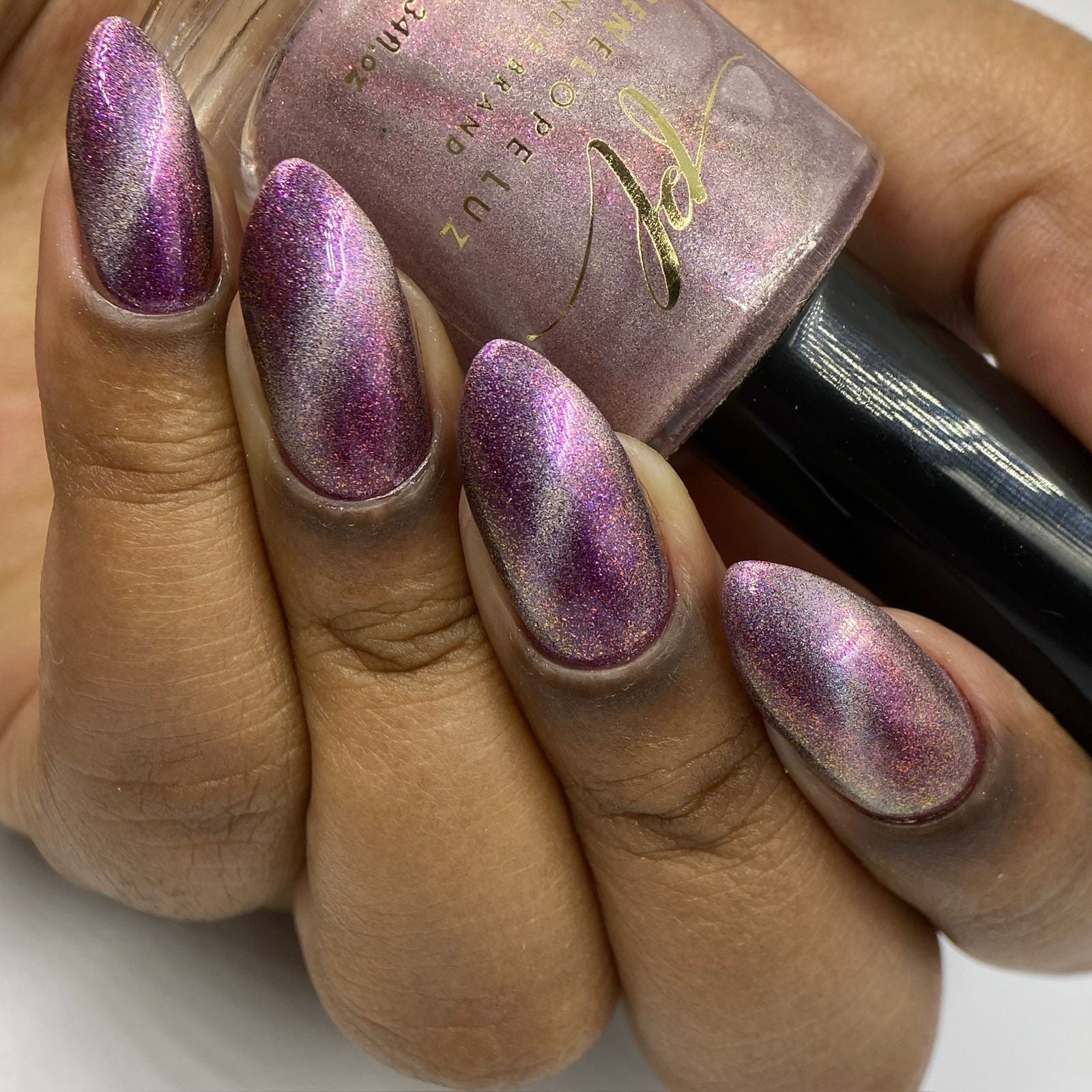 "Embrace Love" is holo magnetic with pink/gold shimmer.