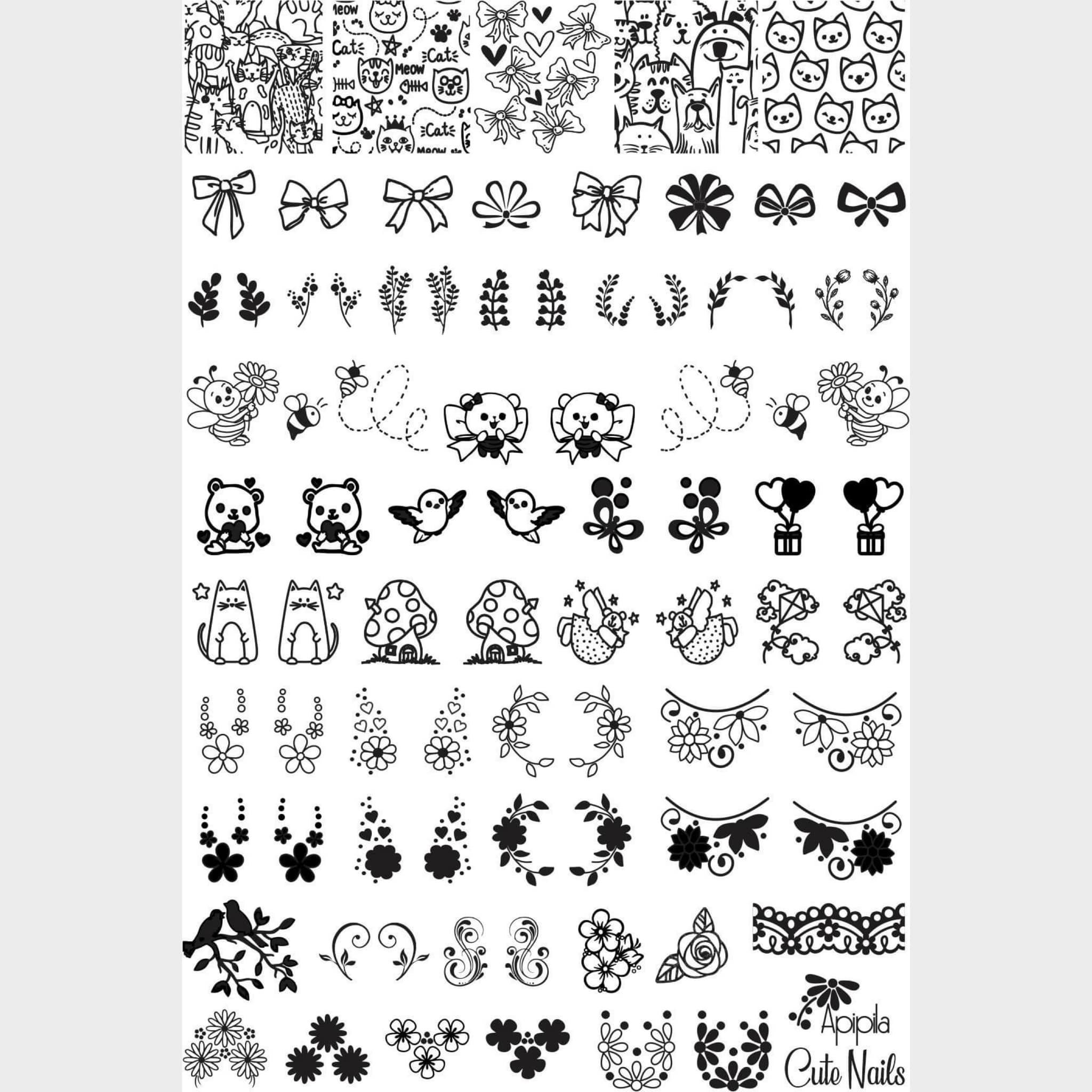 Apipila brings a stainless steel stamping plate, engraved in low relief, with designs inspired by a manicure with cute decoration.
