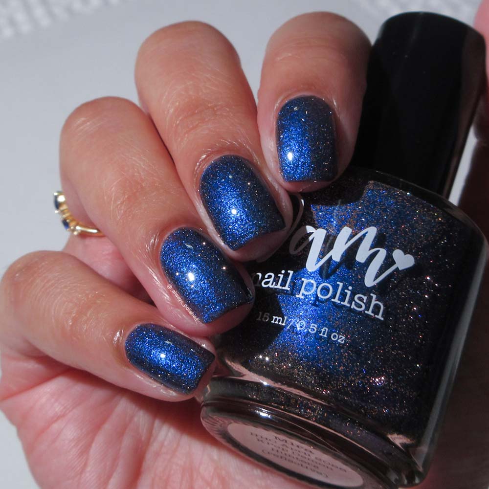 "Mira" has a jelly black base with blue shifting shimmer and pink reflective glitters.