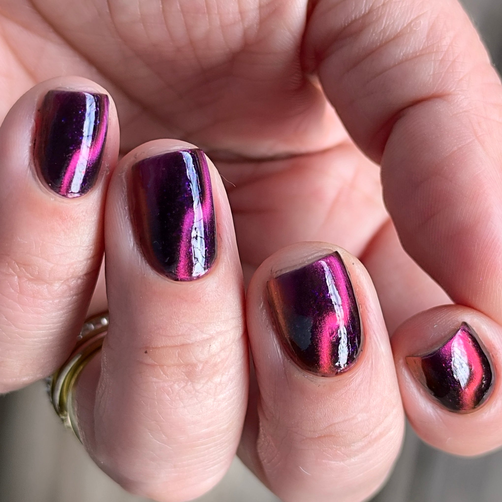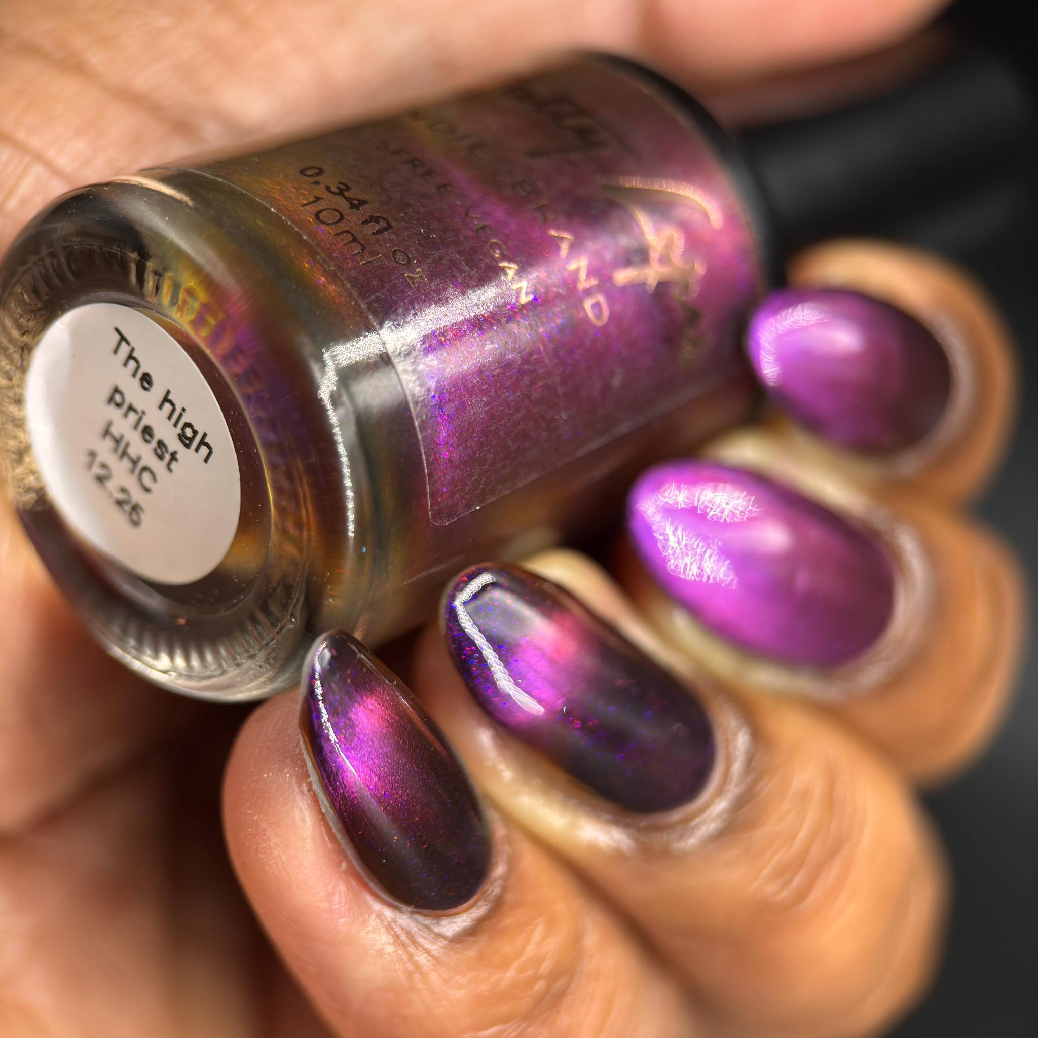 "The High Priest" is a purple/pink multichrome magnetic with purple aurora shimmer.
