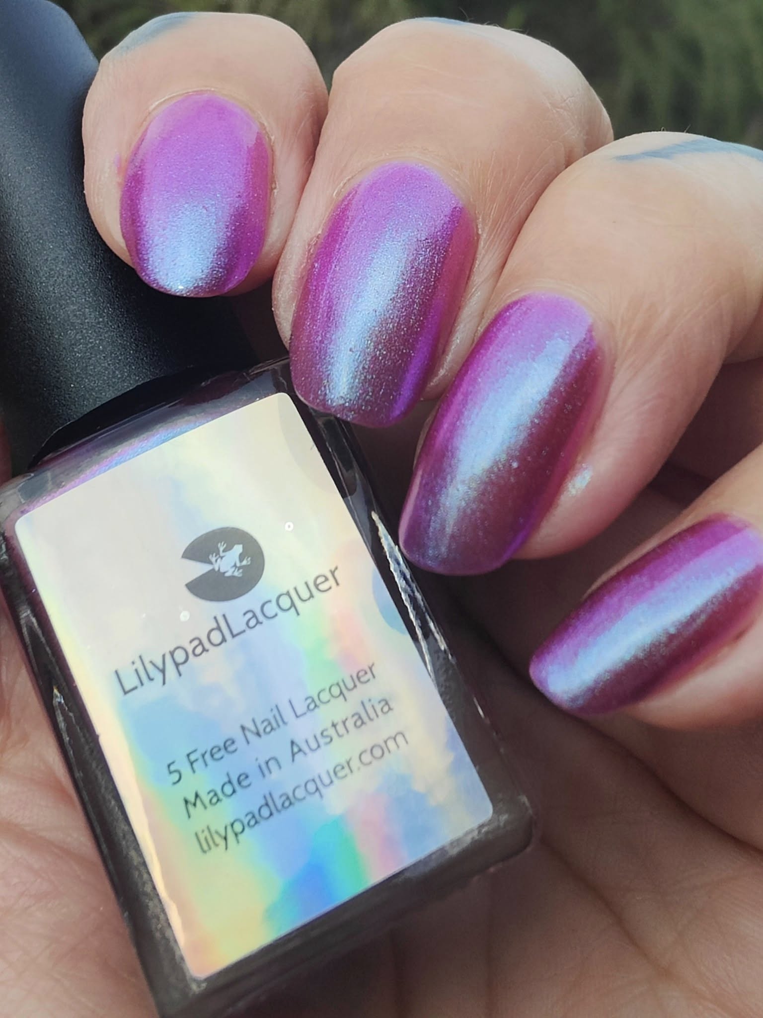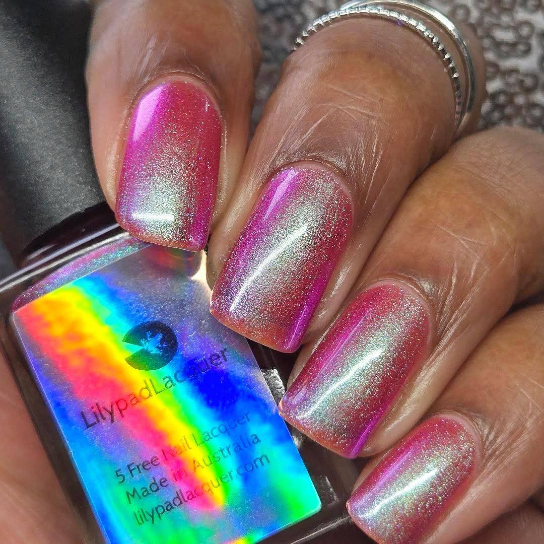 "I Have a Crush on You" has a fuchsia base with pink/teal/blue shifting shimmer.