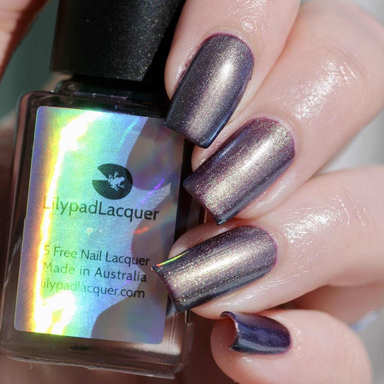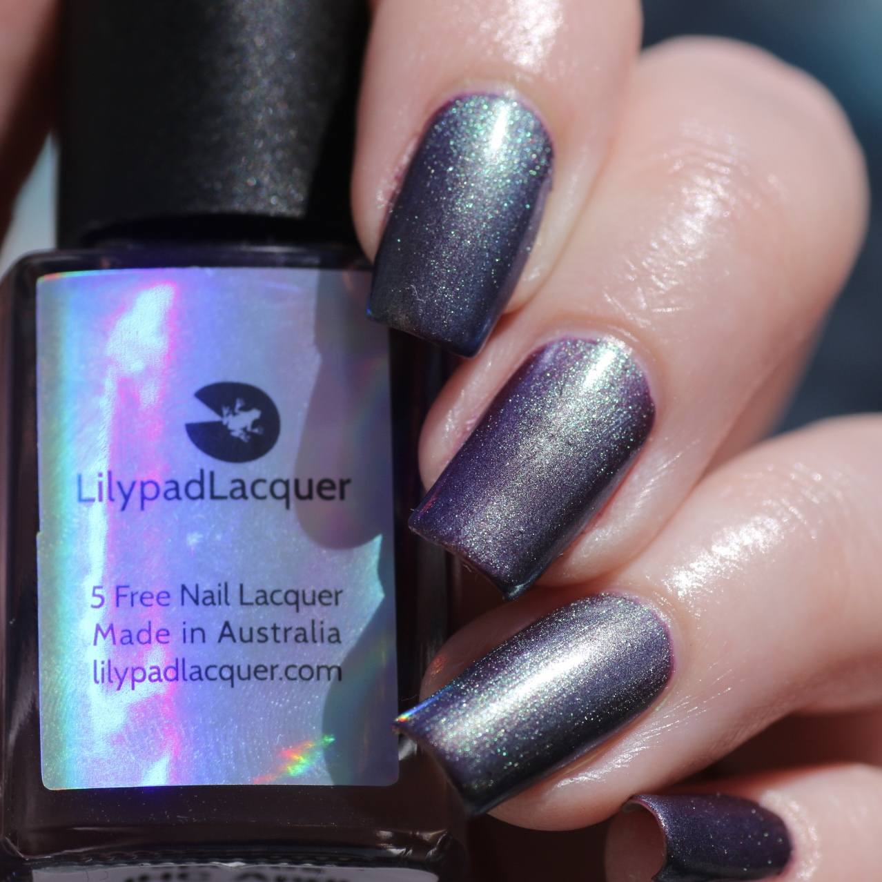 "Wide Open Spaces" has a plum base with olive green/blue/teal shifting shimmer.