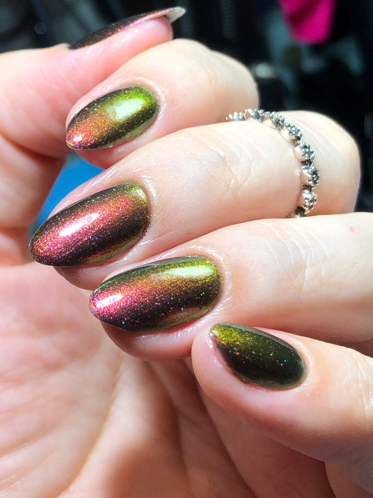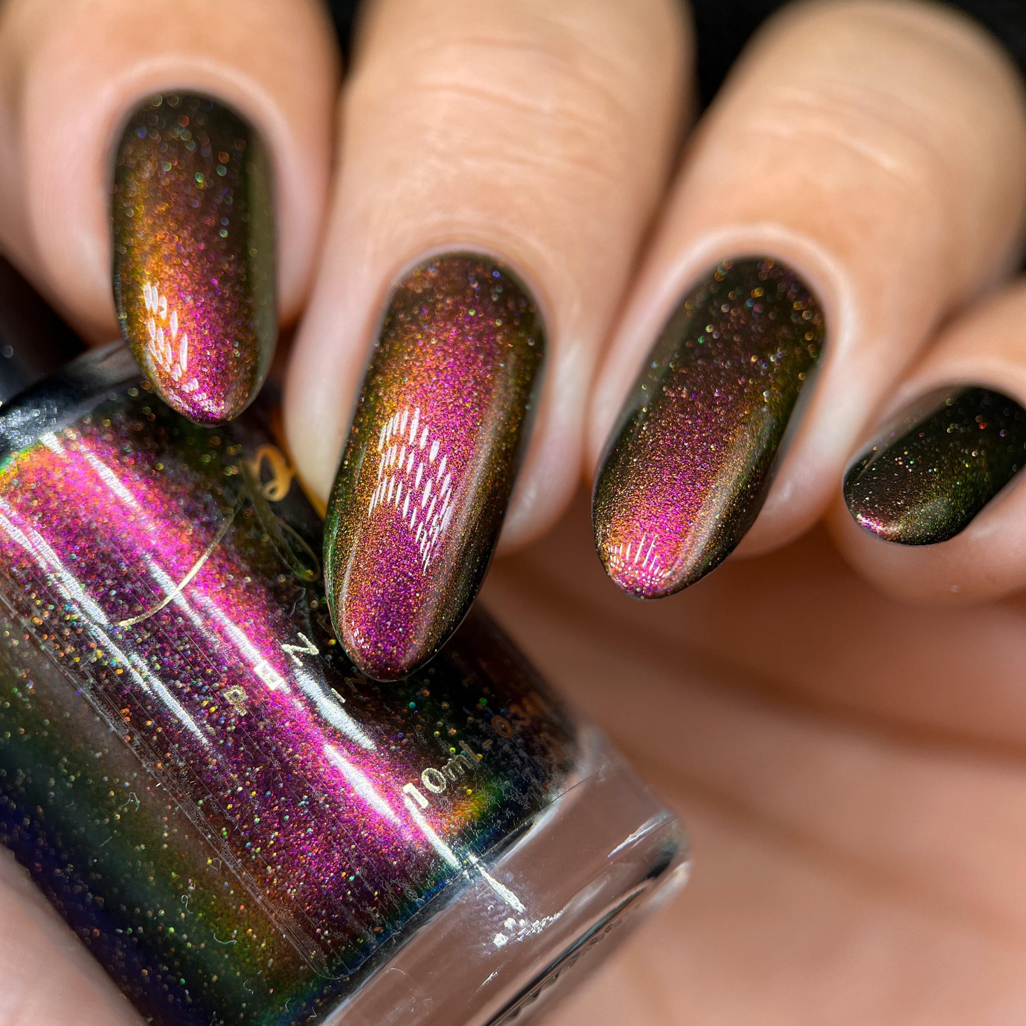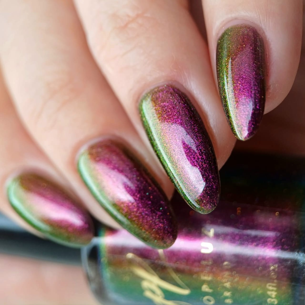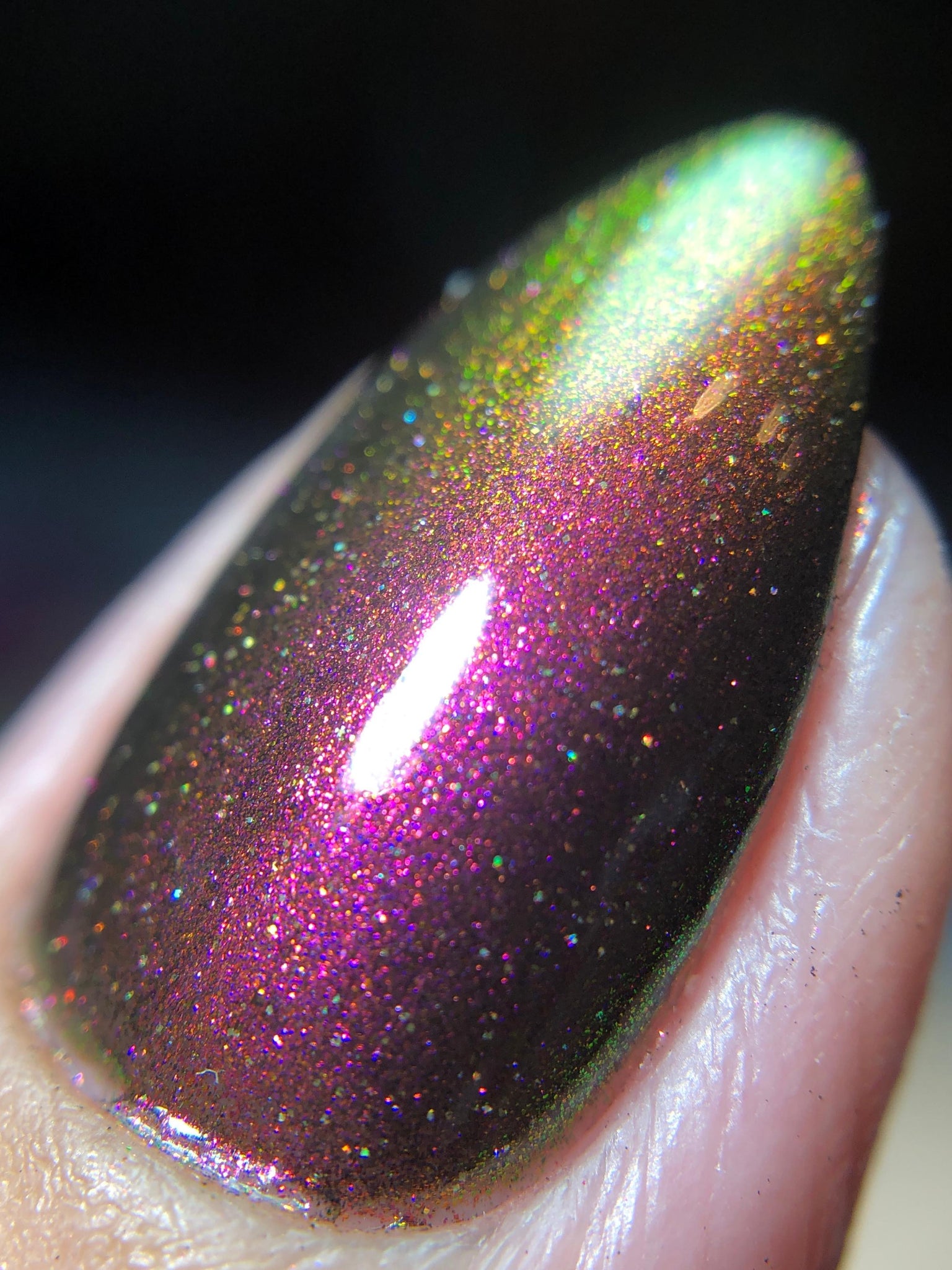 "Victoria Amazonica" is a multichrome pink/red/cooper/gold/green with black base.