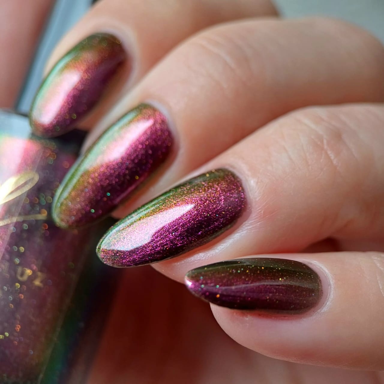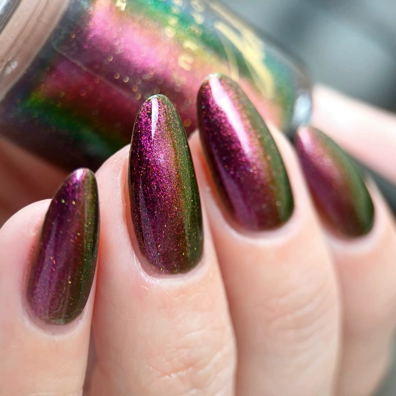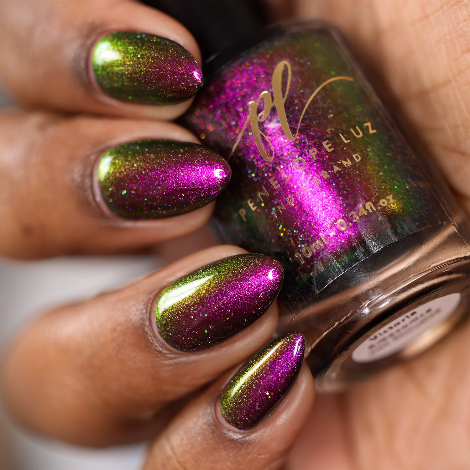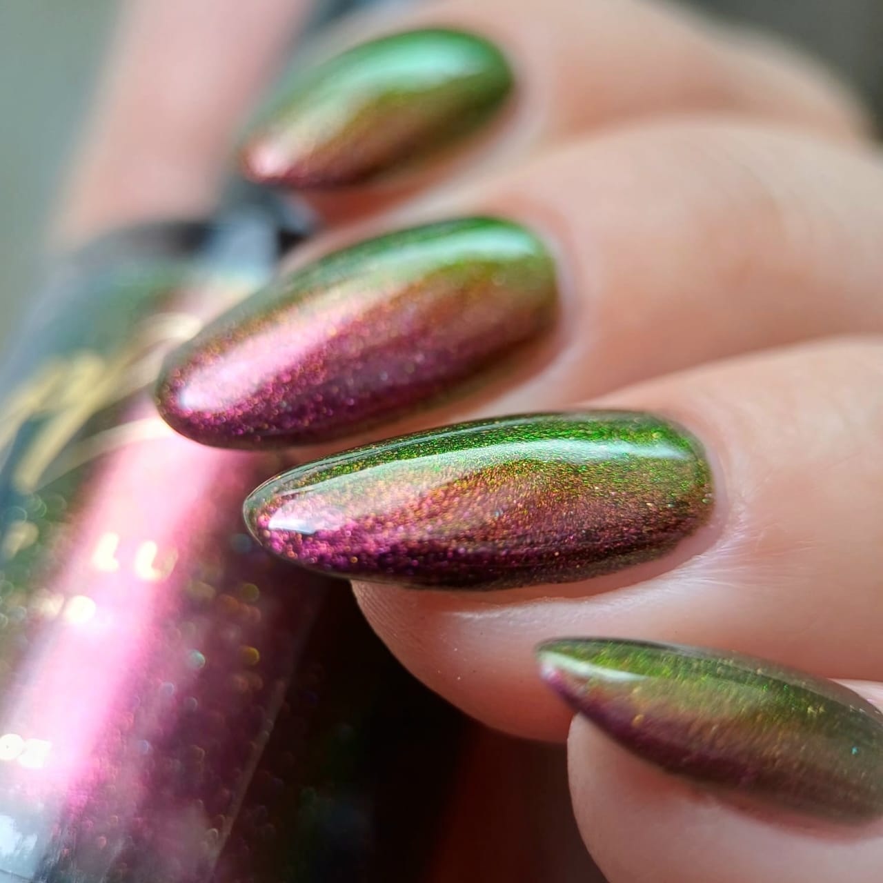 "Victoria Amazonica" is a multichrome pink/red/cooper/gold/green with black base.