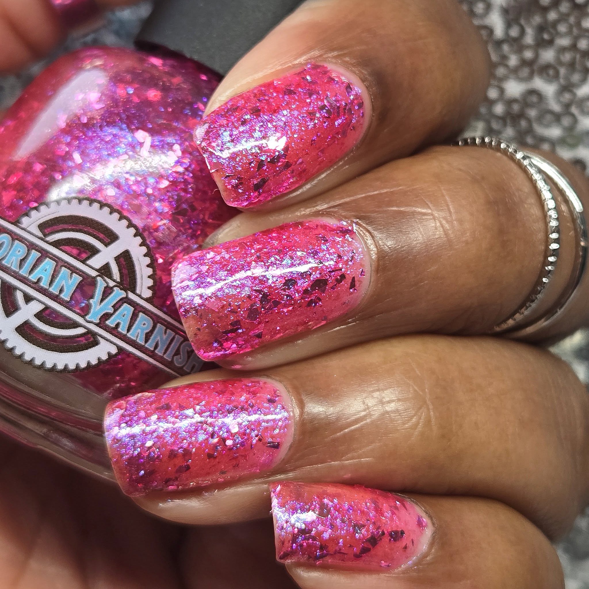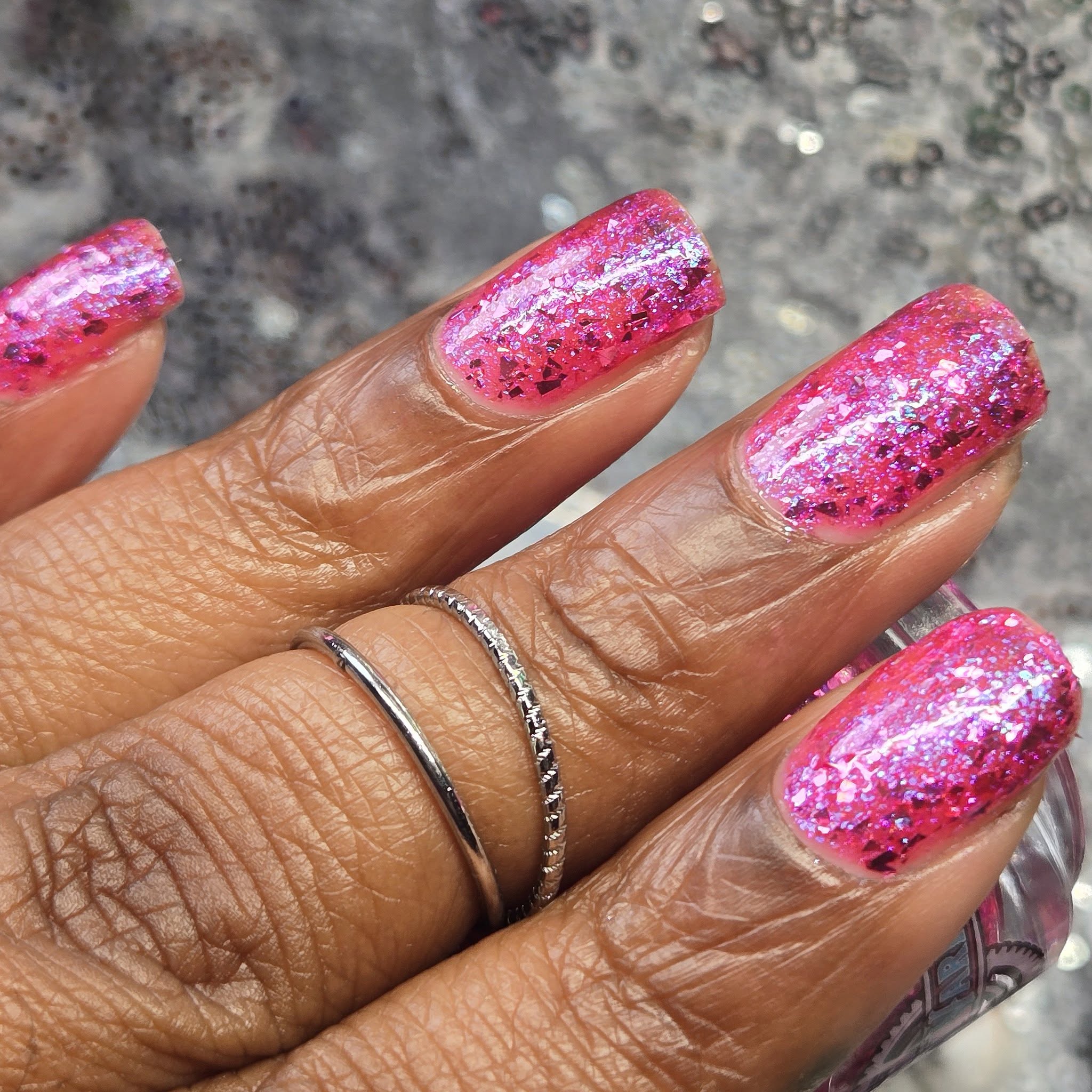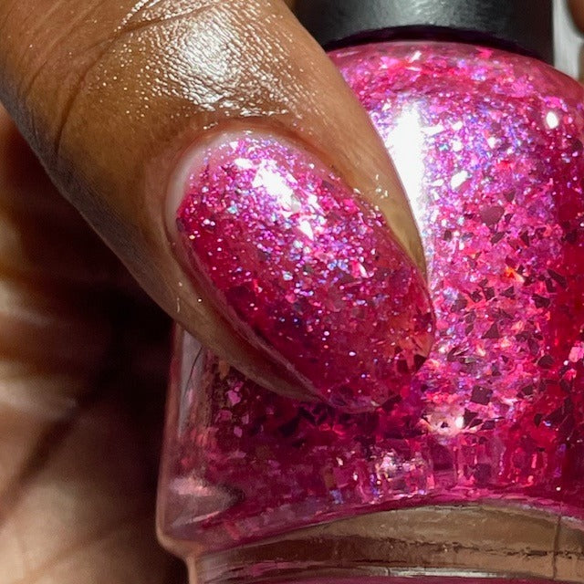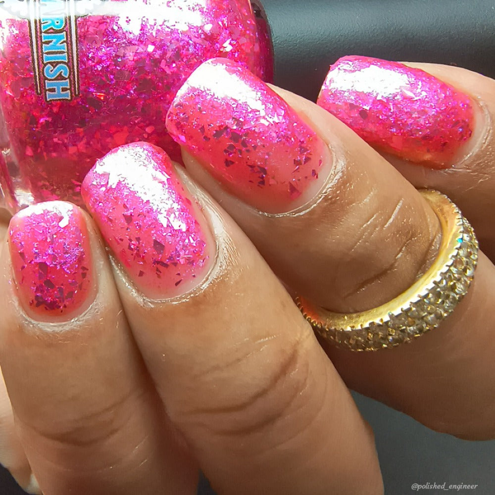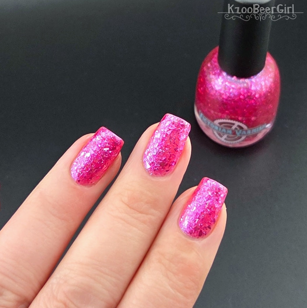 "I Have A Problem with My Licker" has a pinky sheer base loaded with pink to silver metallic flakes and Ghost flakies. Perfect by itself or top it over It’s Ruff Under the Covers.