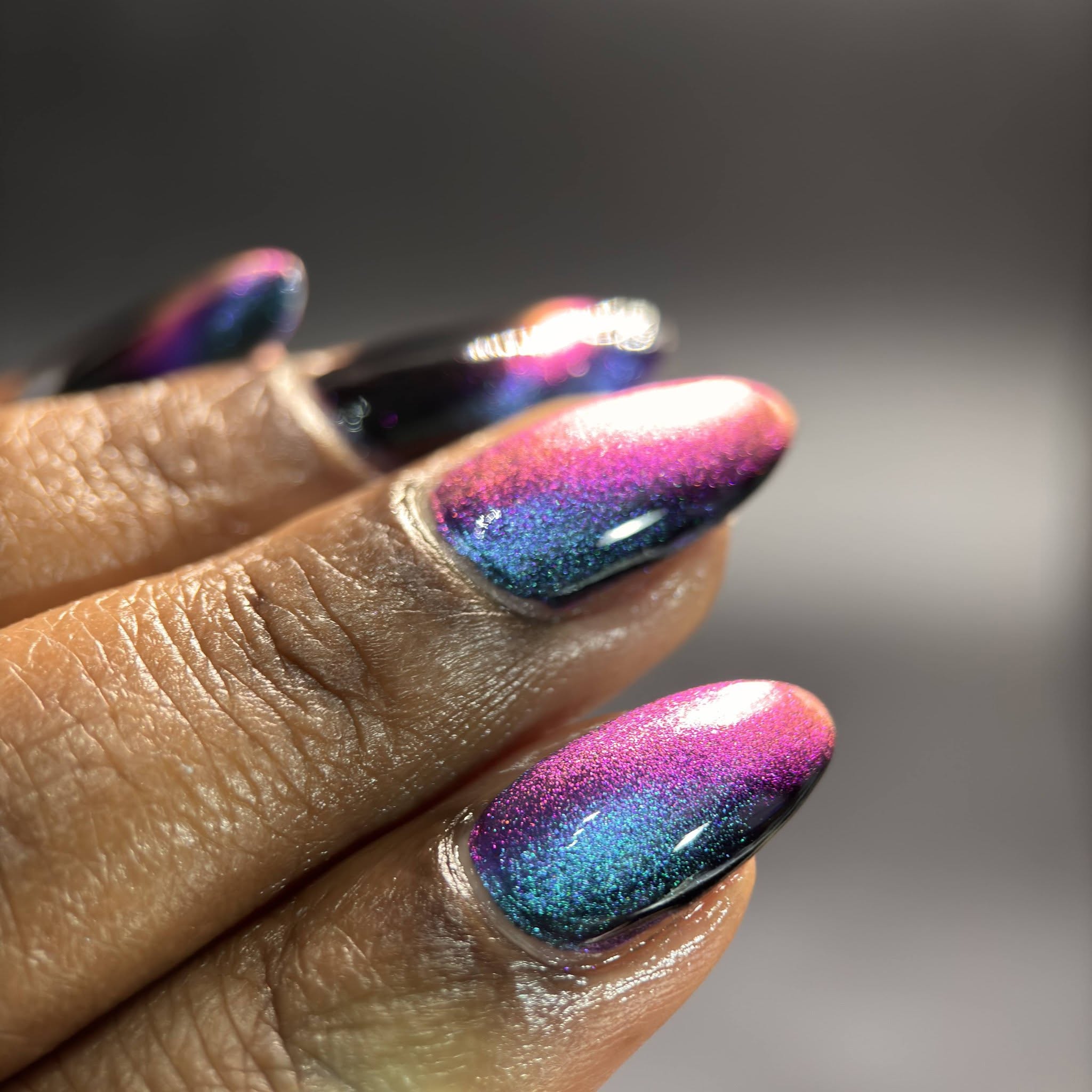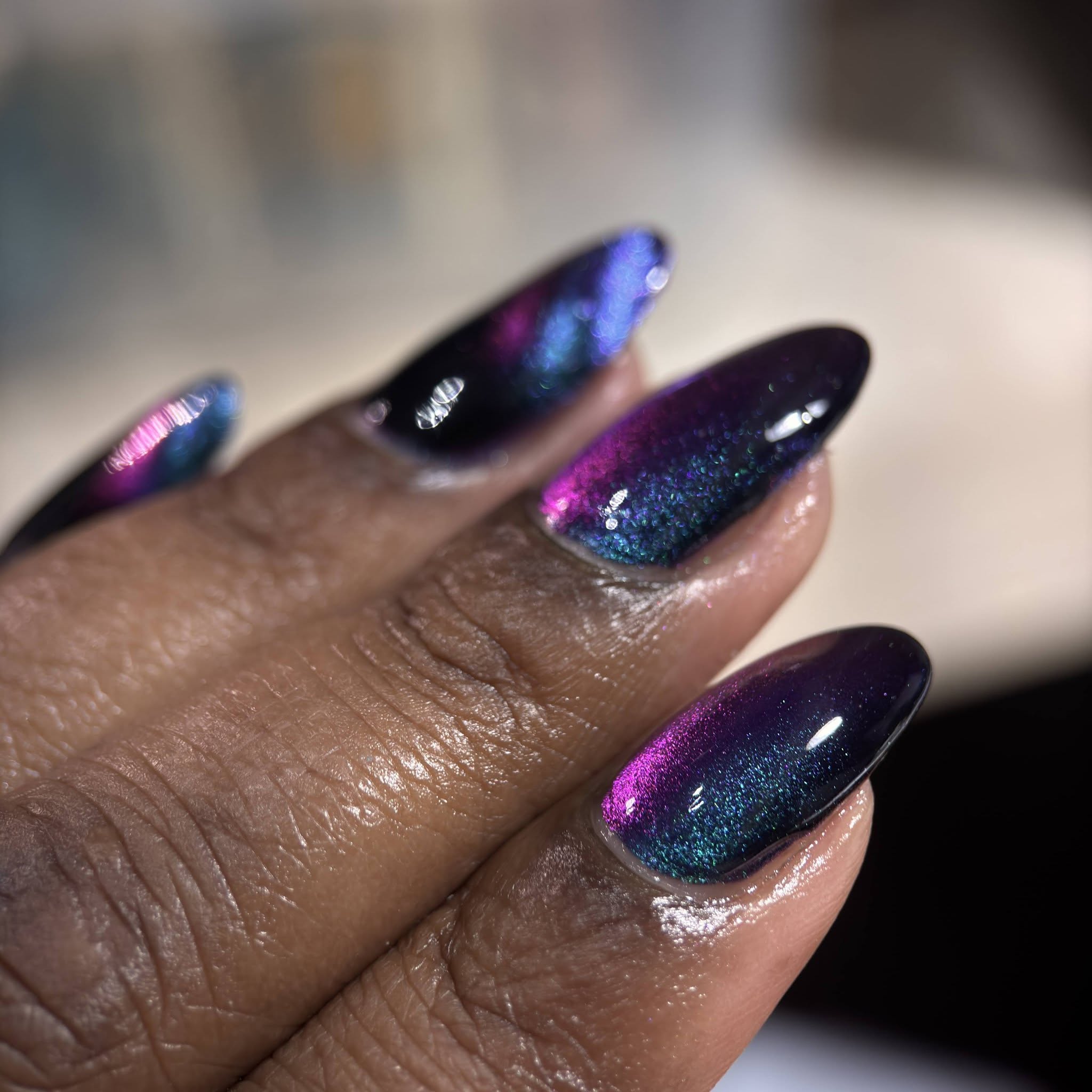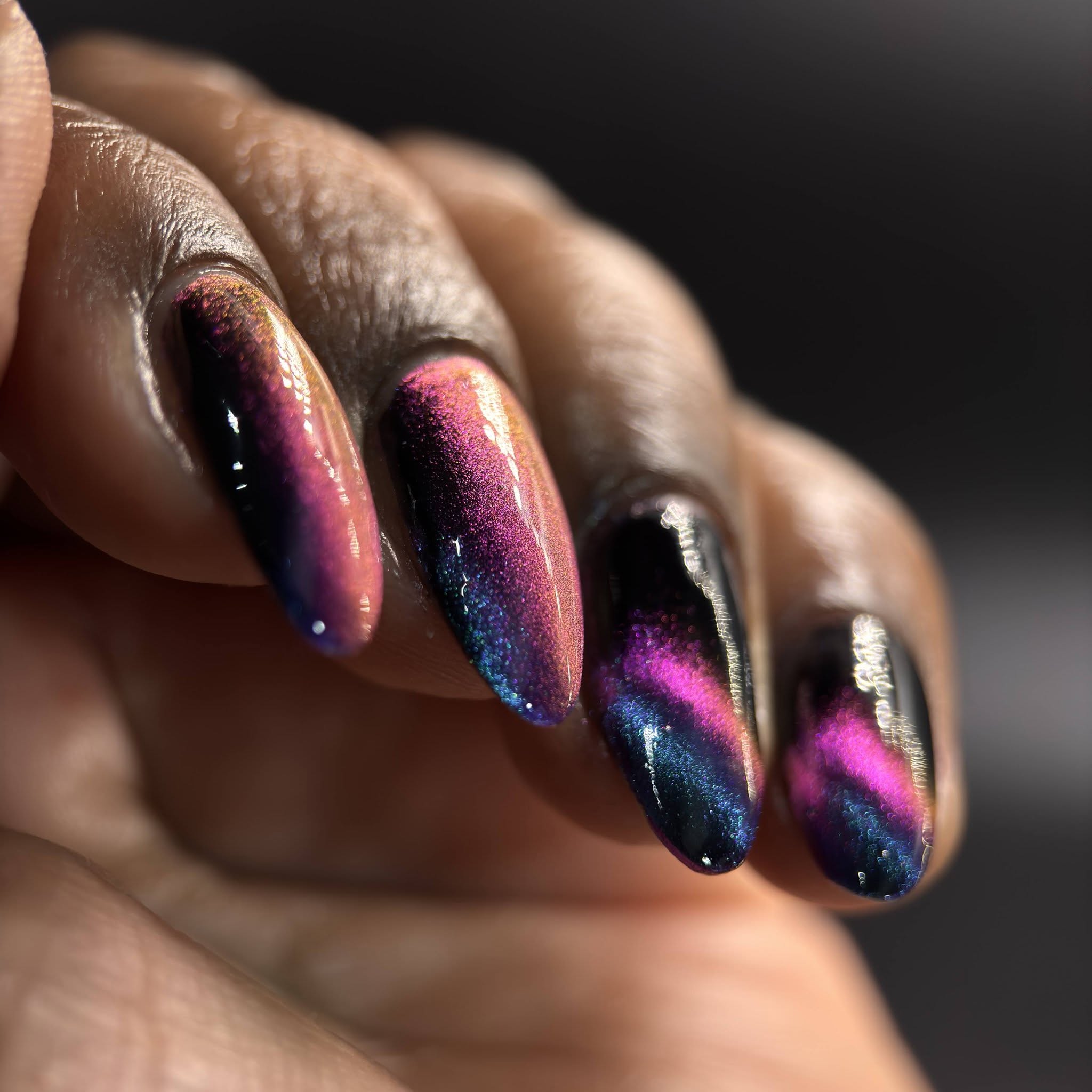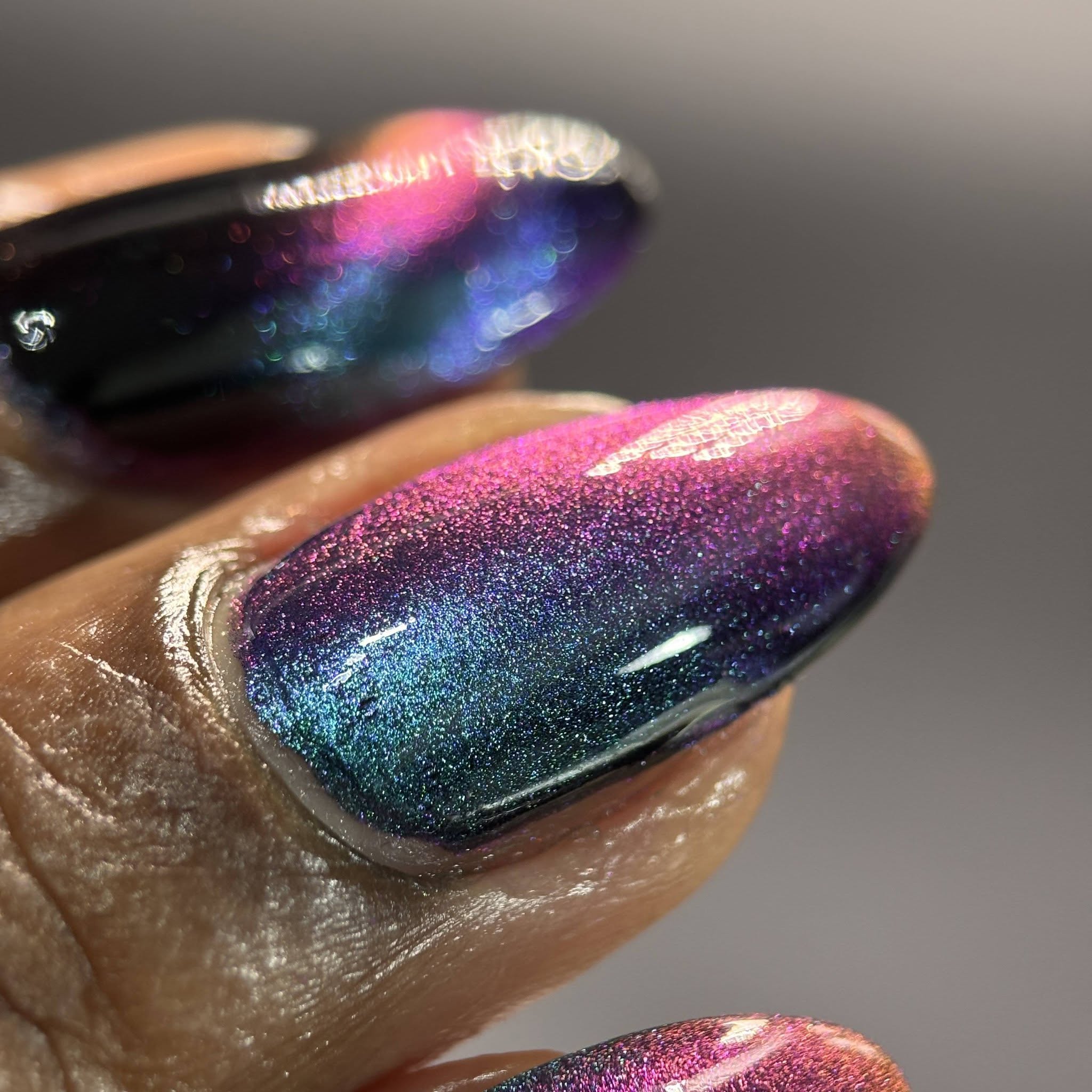 "Comet" is a turquoise-blue-violet magnetic polish.