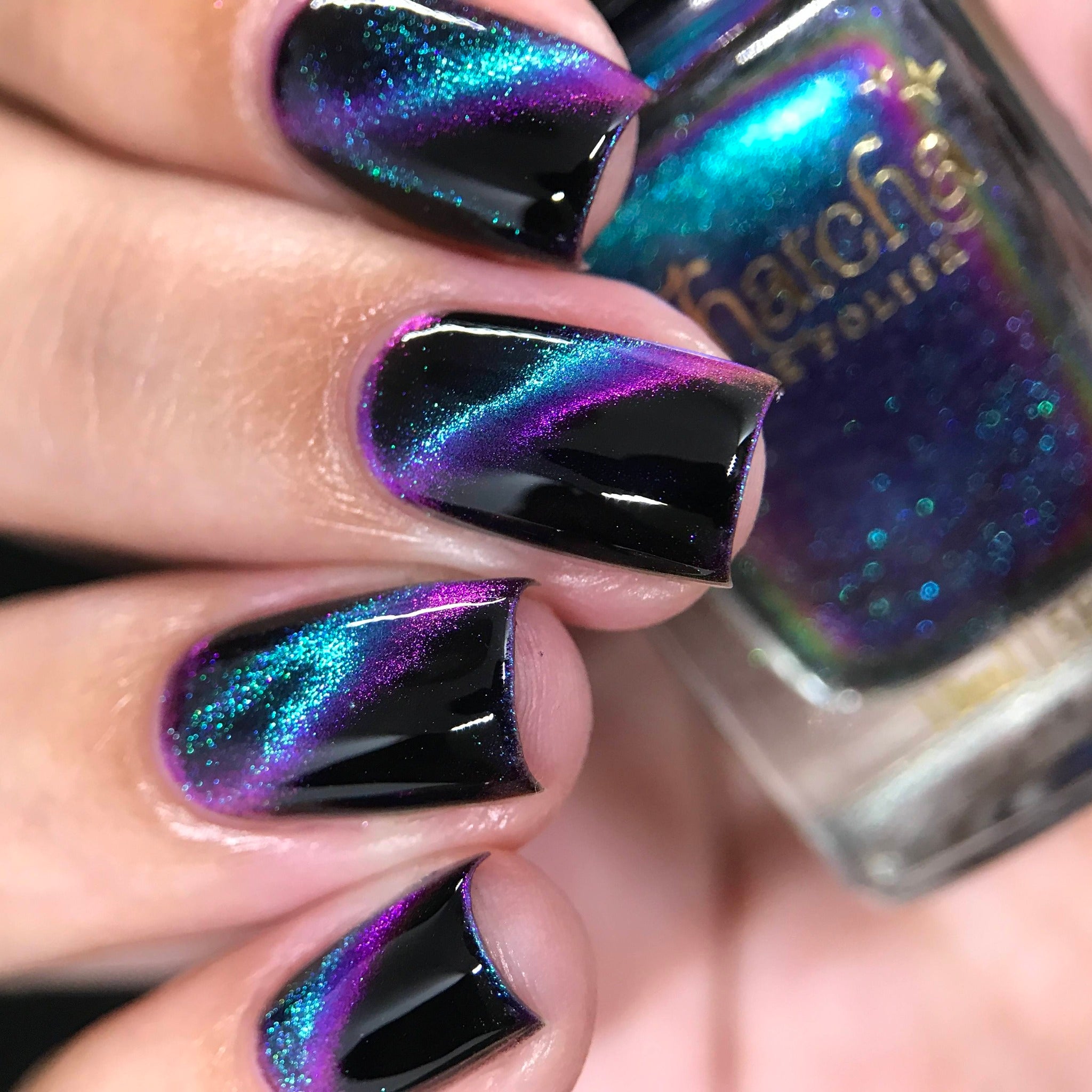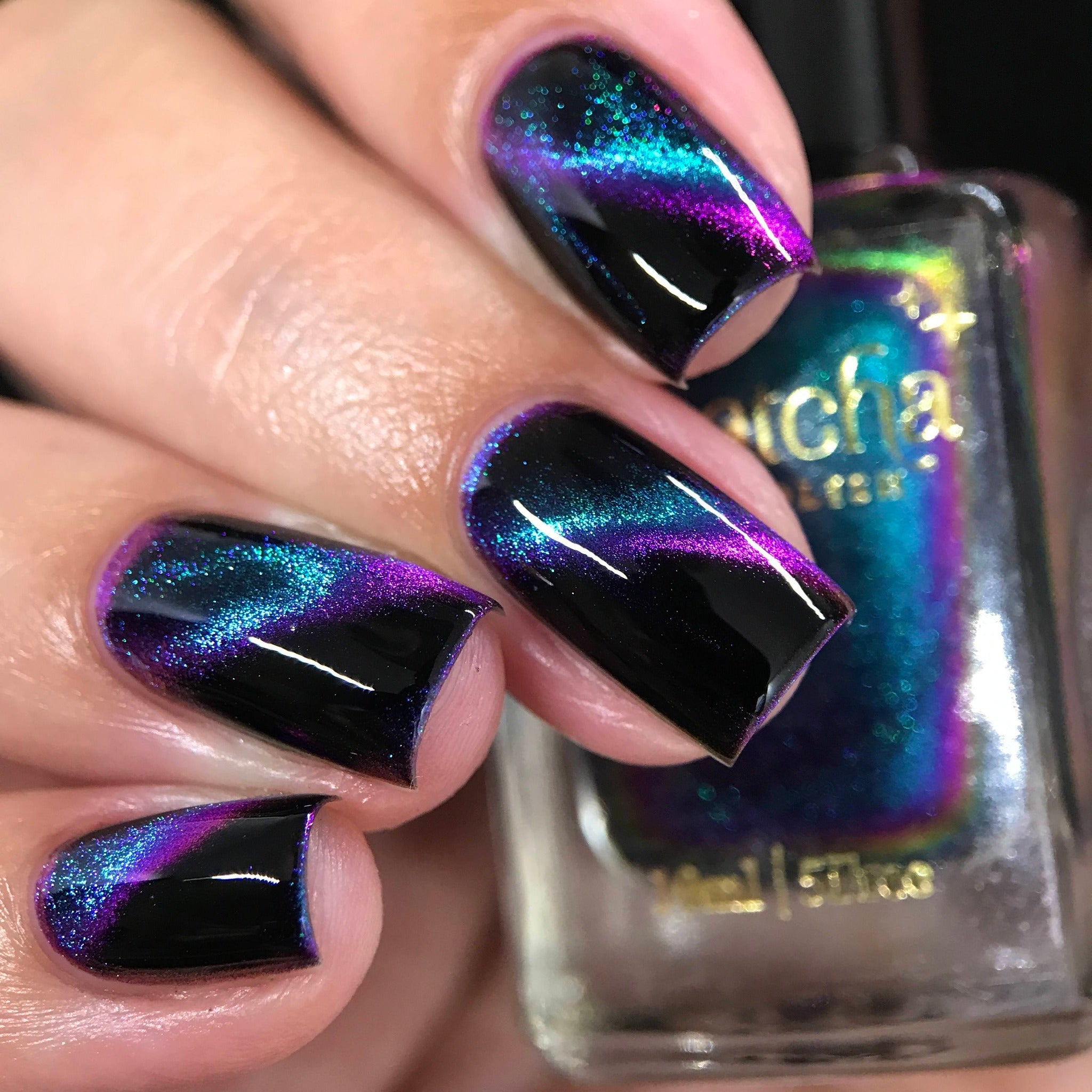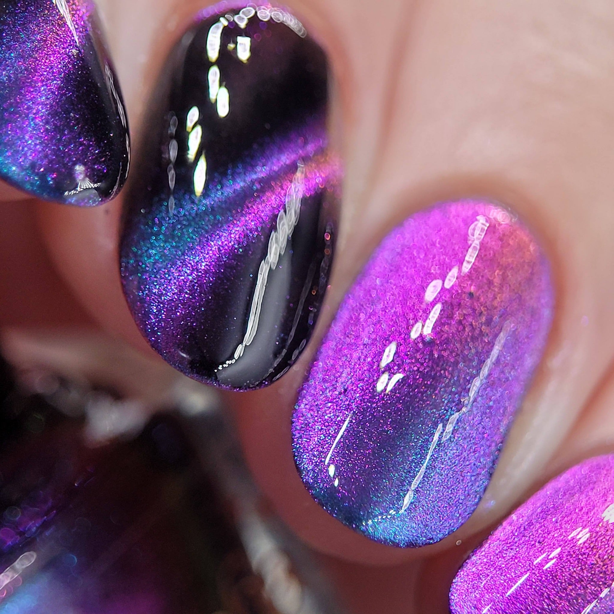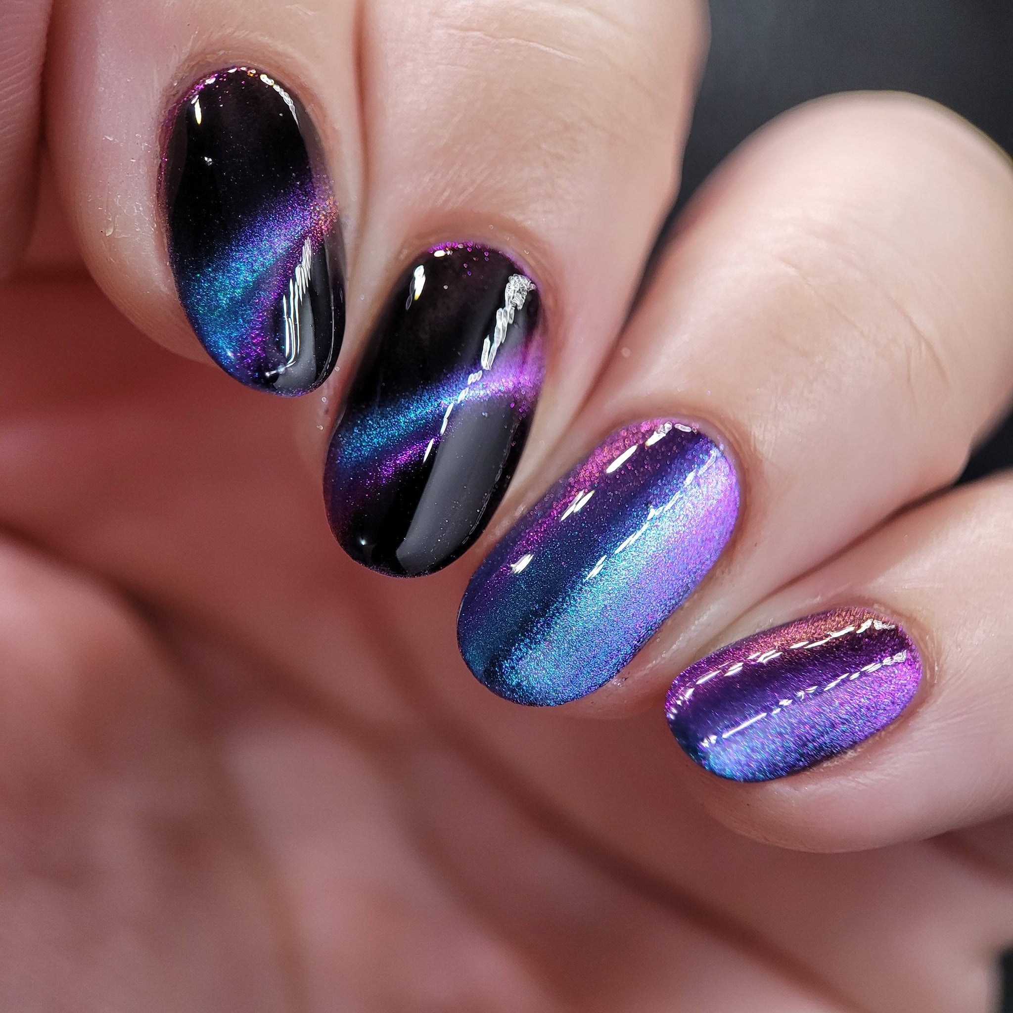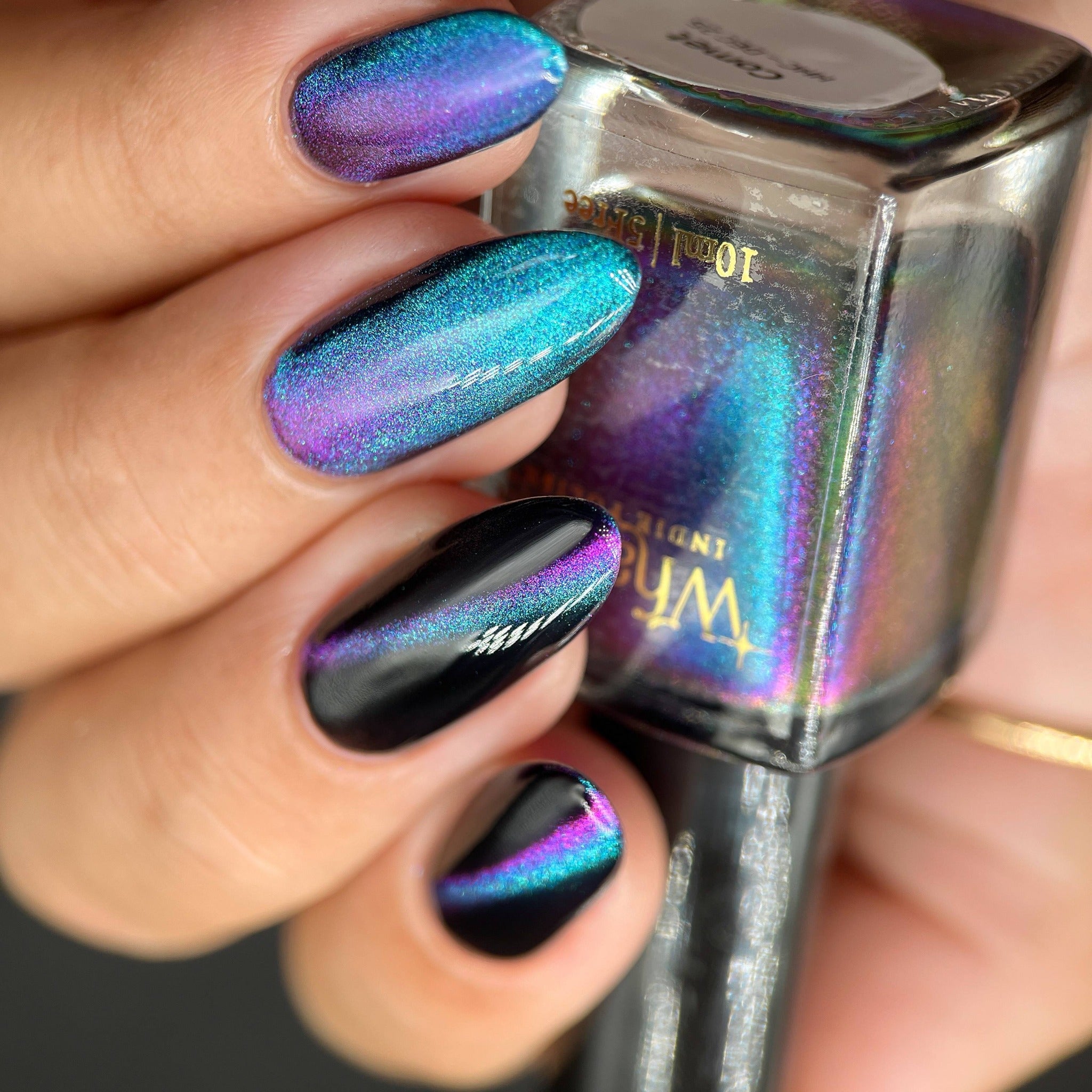 "Comet" is a turquoise-blue-violet magnetic polish.