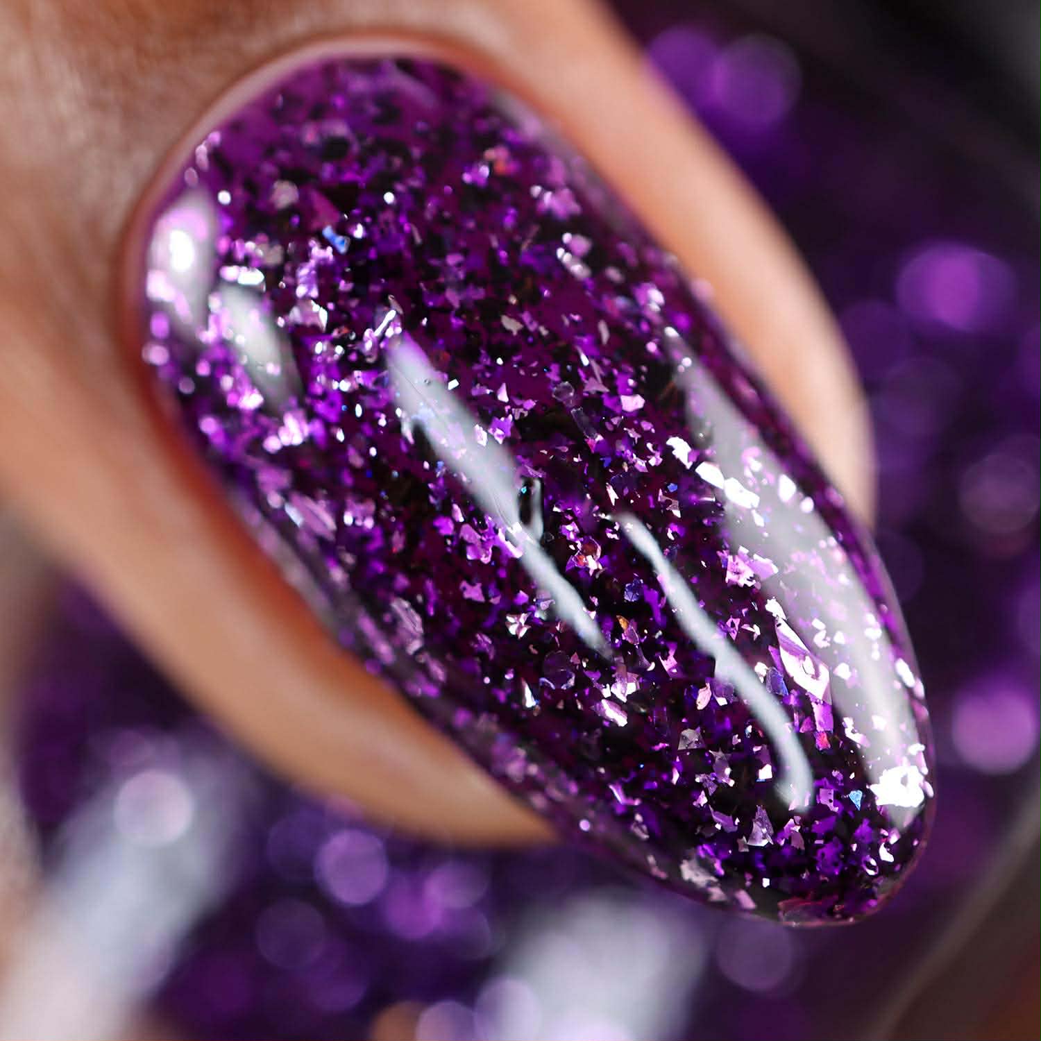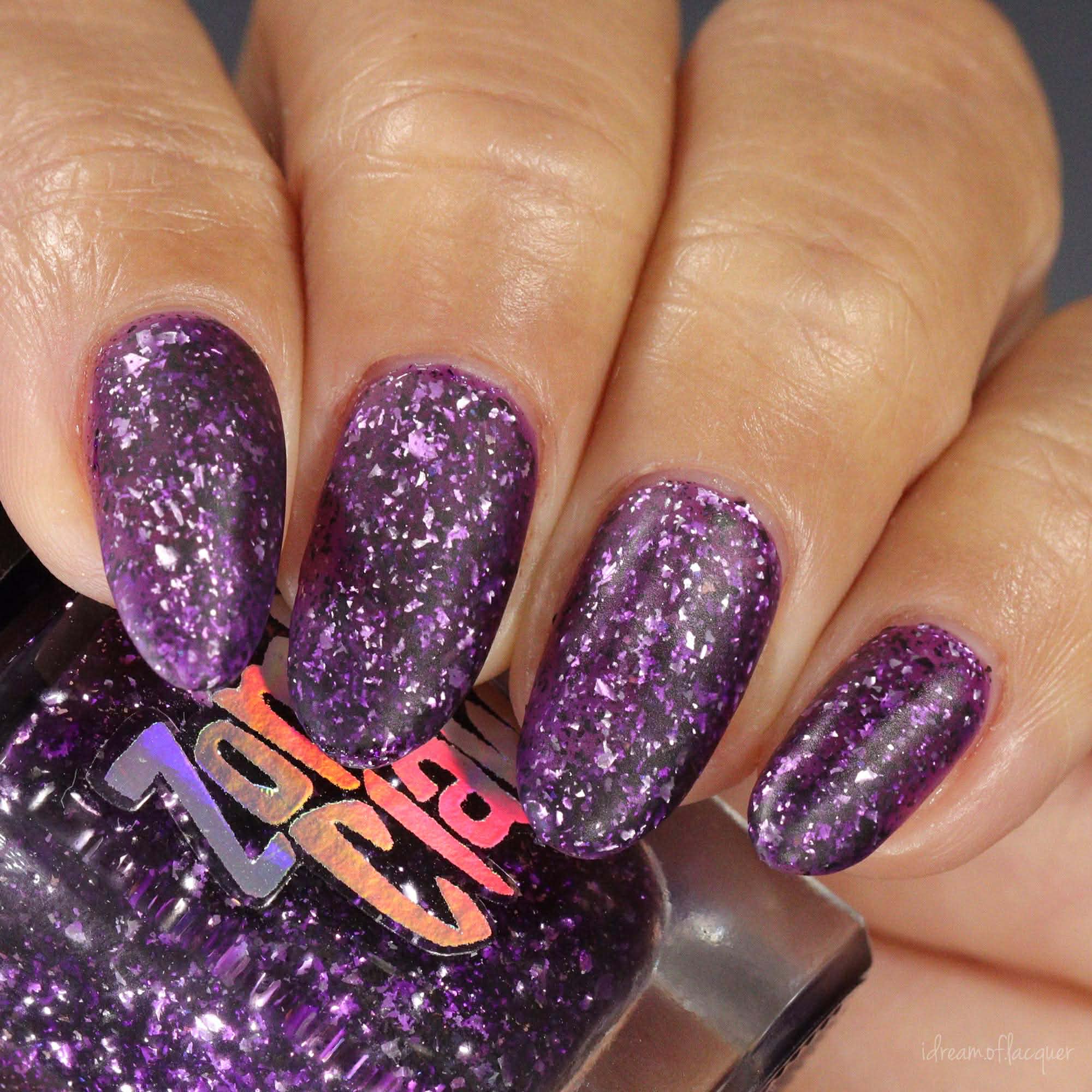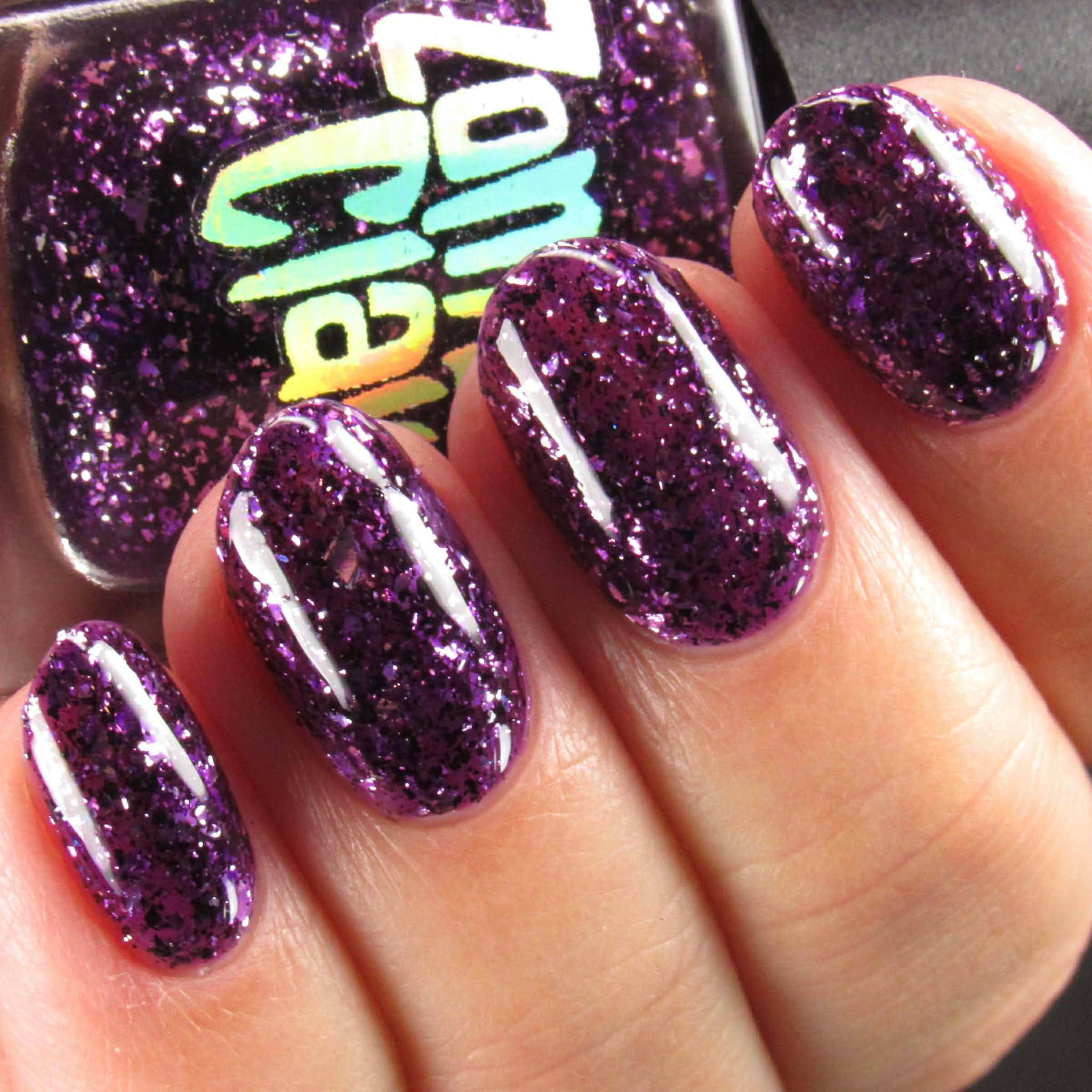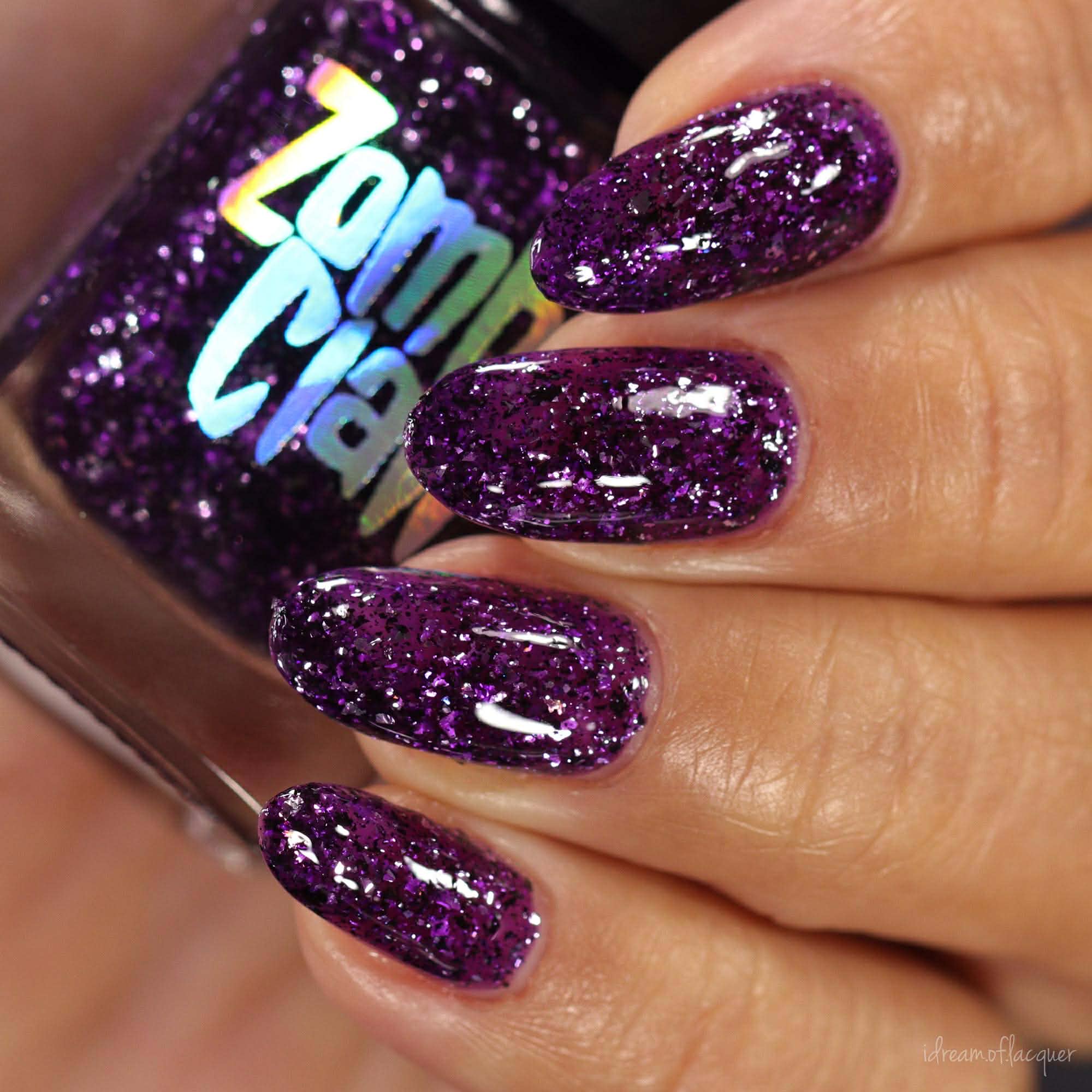 "On Wednesdays We Eat Brains" is a moody purple with flecks of black/silver flakies.
