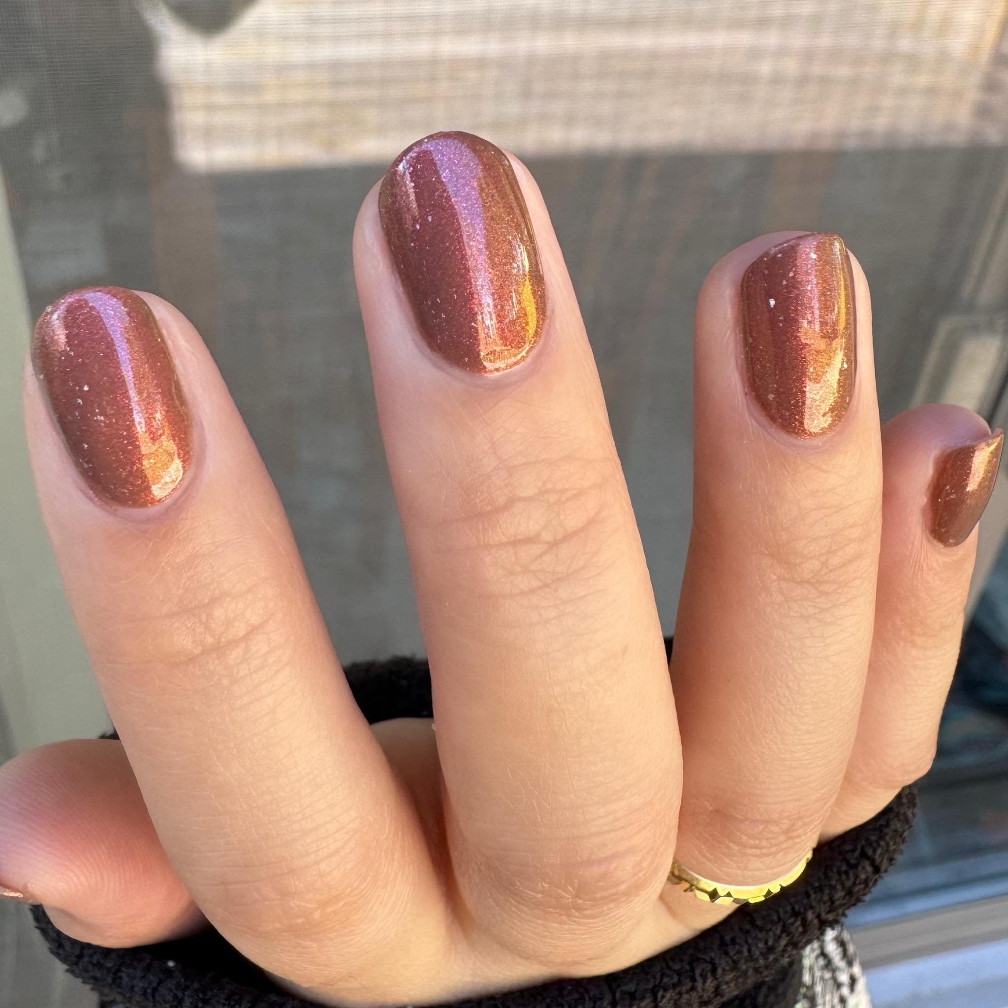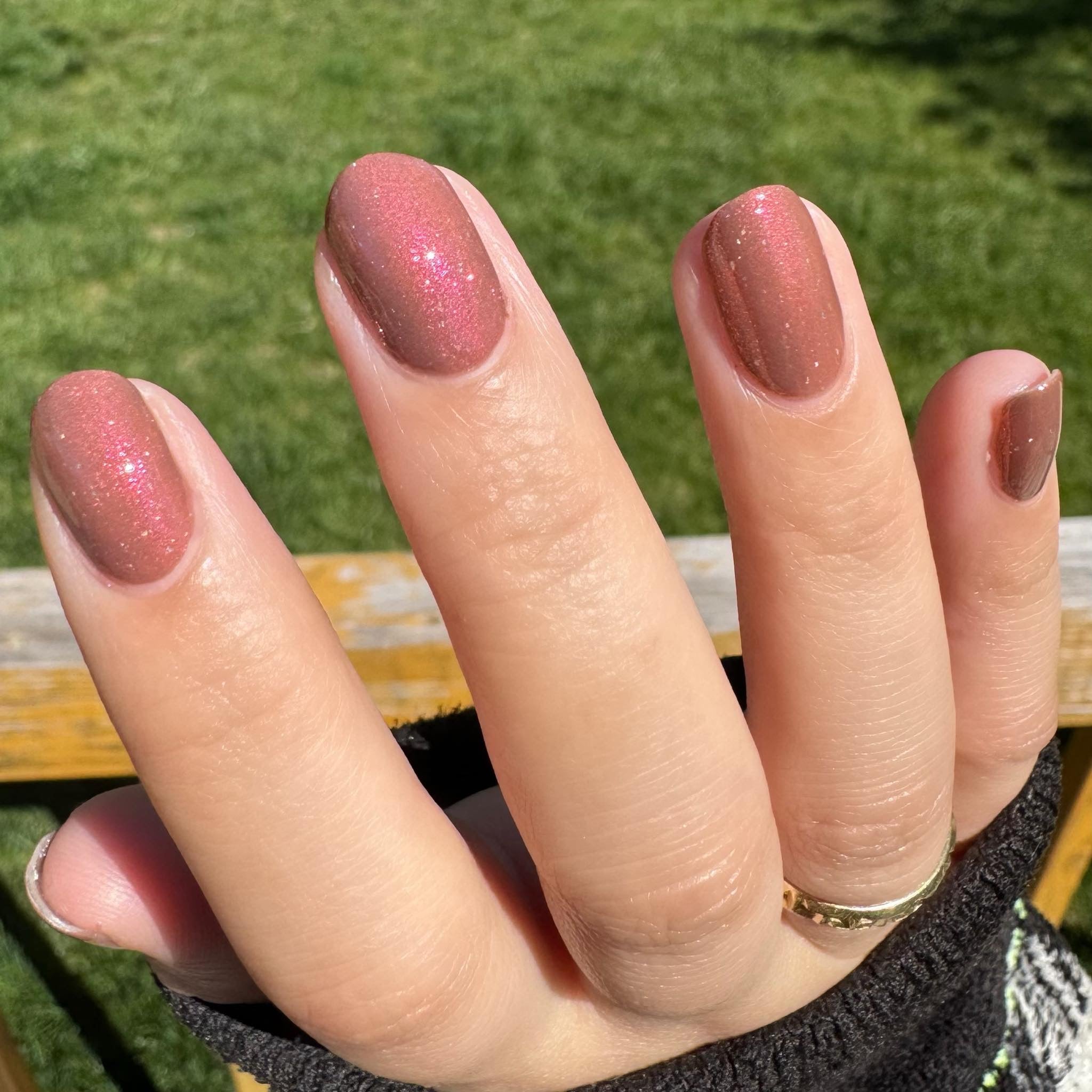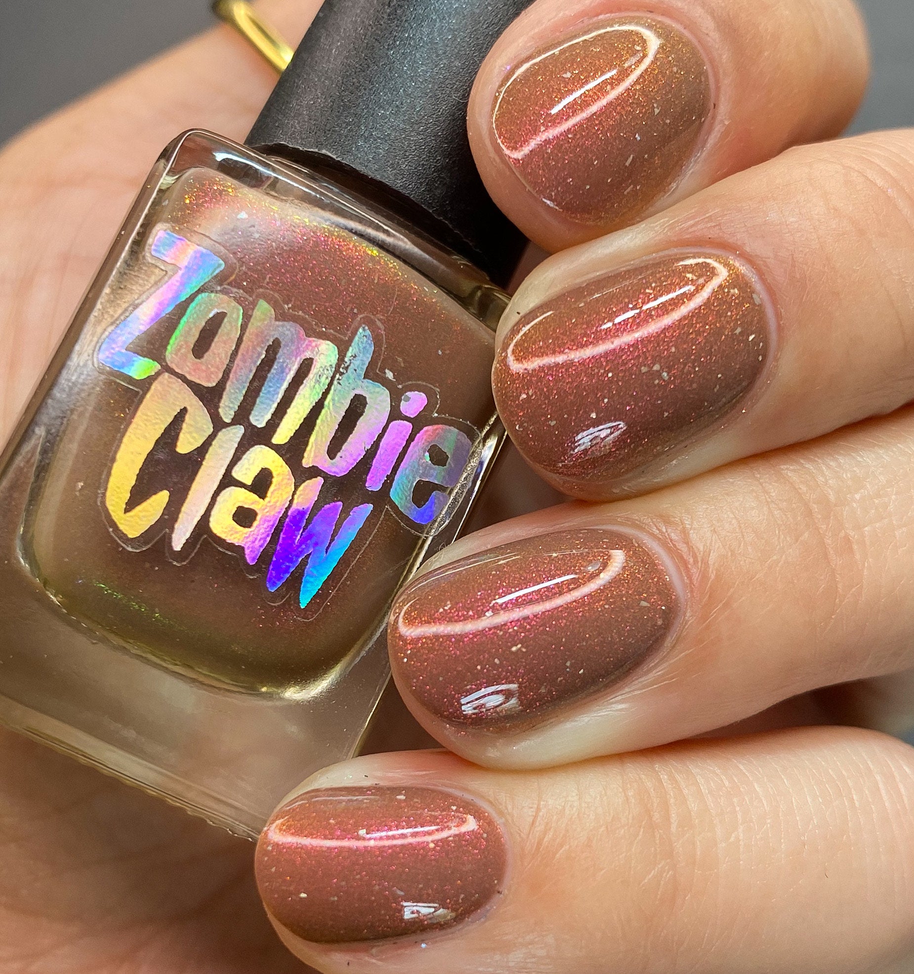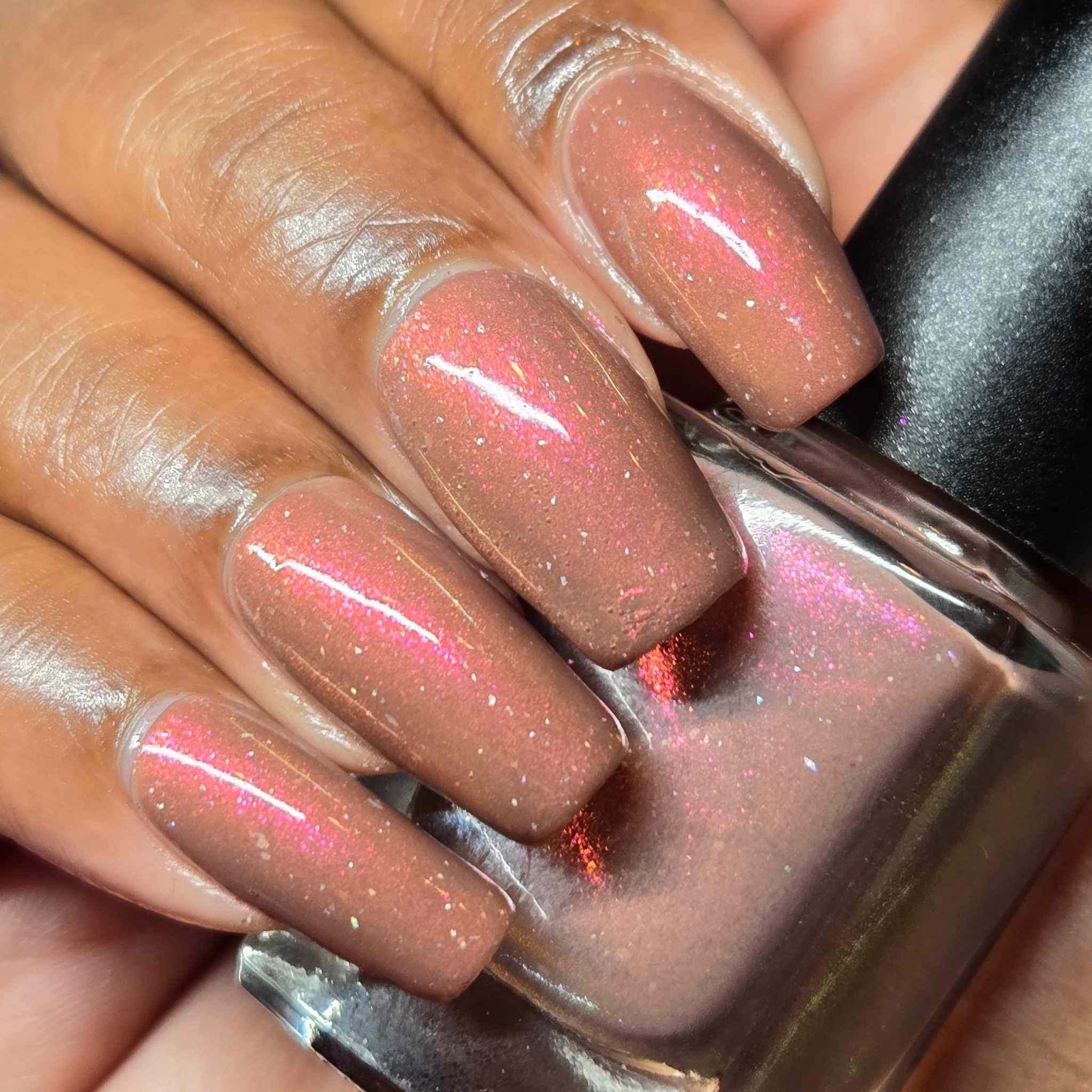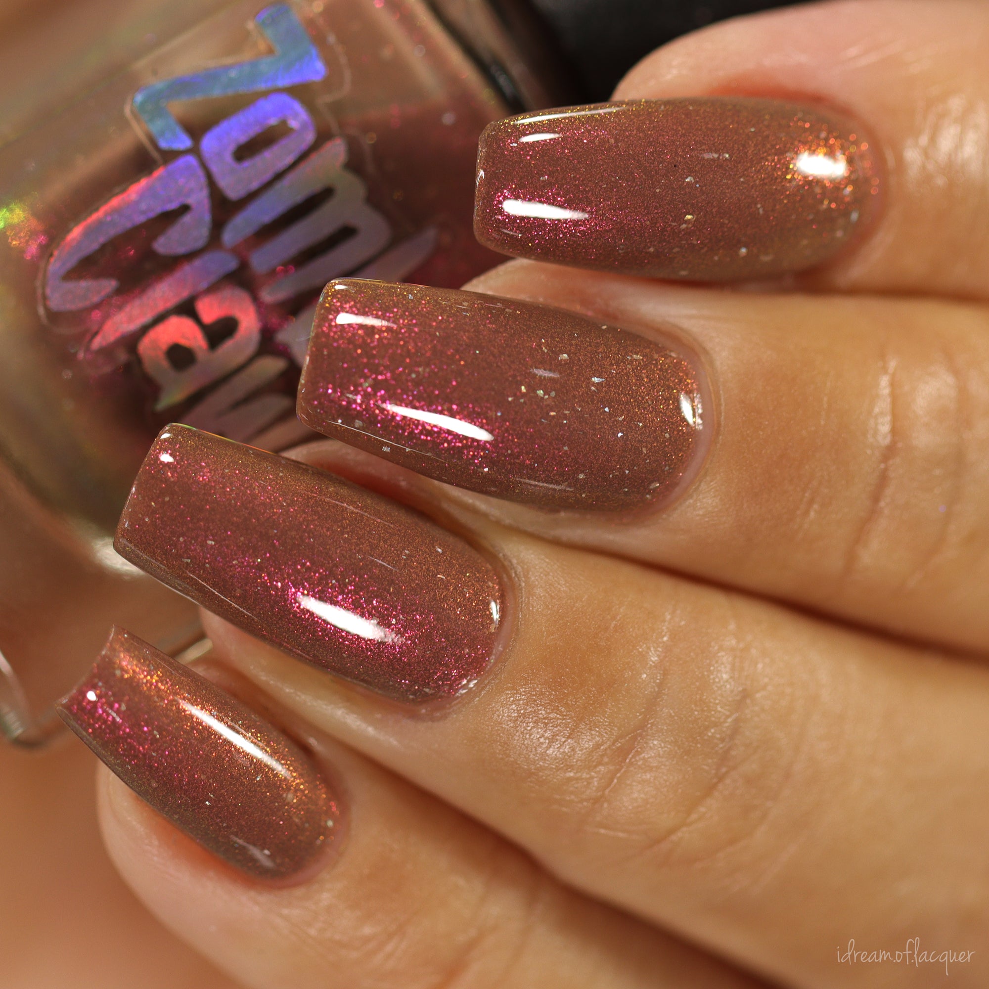 "Super Squirrel Strength" has a brown base loaded with red aurora shimmer and holographic flakies.